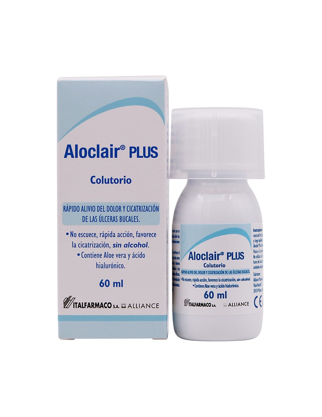 Aloclair PLUS Colut 60 ml es un colutorio diseñado para favorecer la cicatrización y aliviar el dolor causado por pequeñas lesiones en la boca, como estomatitis aftosa, úlceras aftosas y lesiones traumáticas causadas por dispositivos de ortodoncia y dentaduras postizas. También es indicado para úlceras aftosas difusas. Su fórmula contiene ácido hialurónico y Aloe vera, que estimulan el proceso natural de cicatrización de los tejidos dañados.