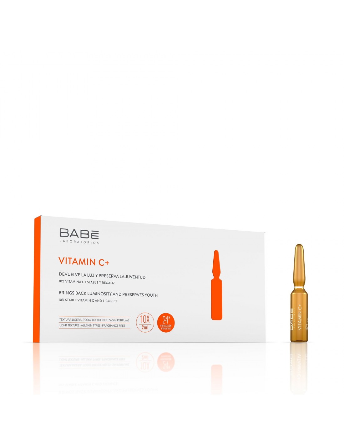 Las ampollas Vitamin C+ aportan luminosidad, tersura y un tono más uniforme, favoreciendo un aspecto más rejuvenecido. De textura ligera de rápida absorción. Su contenido en Vitamina C estable al 10% ejerce una acción antioxidante, reafirmante y aclarante de la piel.