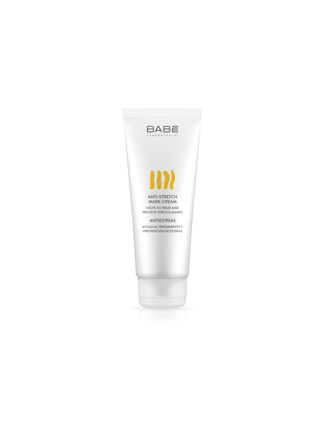 BabeCrema correctora antiestrías apta para todo tipo de piel. Gracias a su fórmula con Rosa de Mosqueta y Centella Asiática, previene y corrige las estrías.