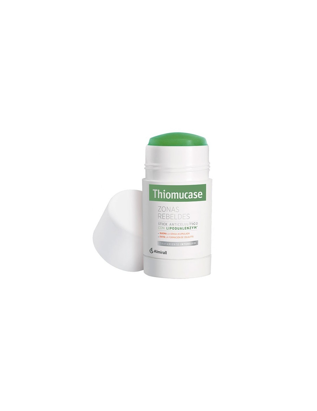 Thiomucase Zonas Rebeldes ayuda a quemar la grasa acumulada y evita la formación de celulitis gracias a su fórmula de doble acción con Lipodualenzym®. Su formato en stick facilita el masaje y la penetración de los activos en las zonas rebeldes en fases avanzadas de celulitis común.