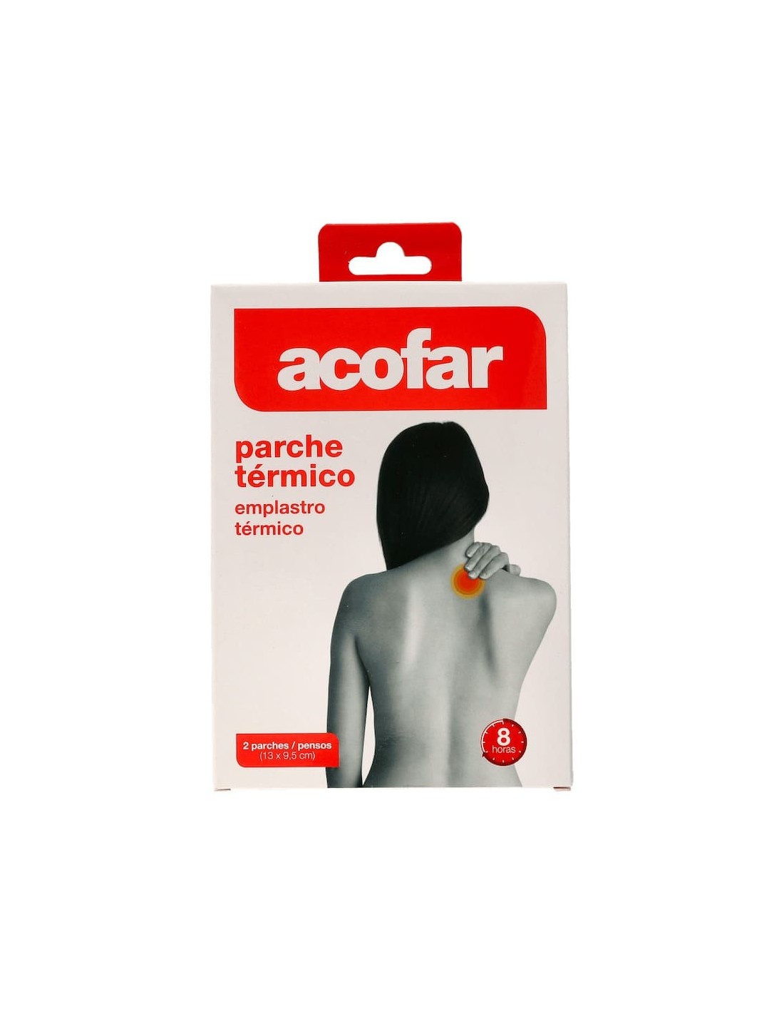 ACOFAR PARCHE TERMICO 2 UND es un producto diseñado para proporcionar alivio temporal de dolores musculares y articulares menores asociados a sobreesfuerzo, distensiones, esguinces y artritis