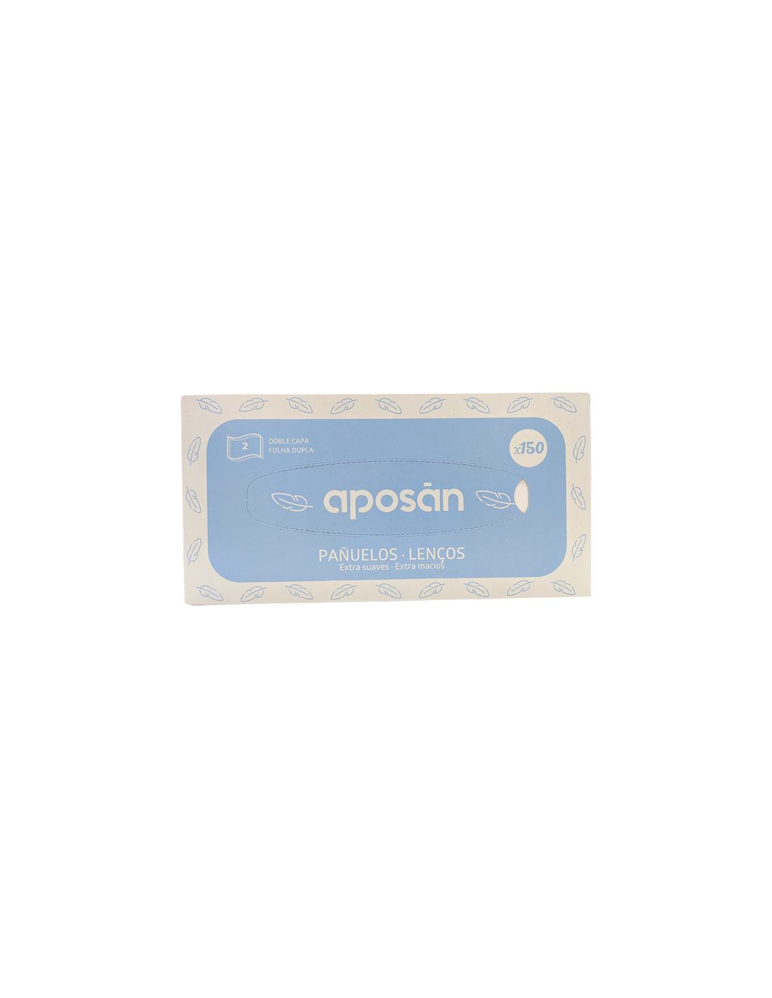 - Los pañuelos APOSAN DOBLE CAPA EXTRA SUAVE vienen en una caja que contiene 150 unidades.