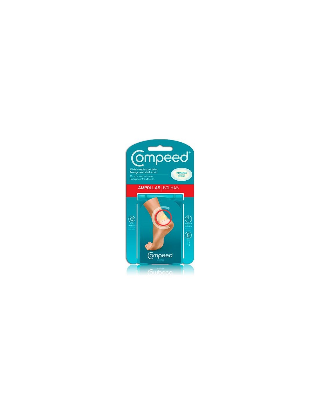 - Protección y cicatrización: Compeed Ampollas actúa como una barrera protectora sobre la ampolla, evitando la fricción y el roce con el calzado, lo que ayuda a acelerar el proceso de cicatrización.