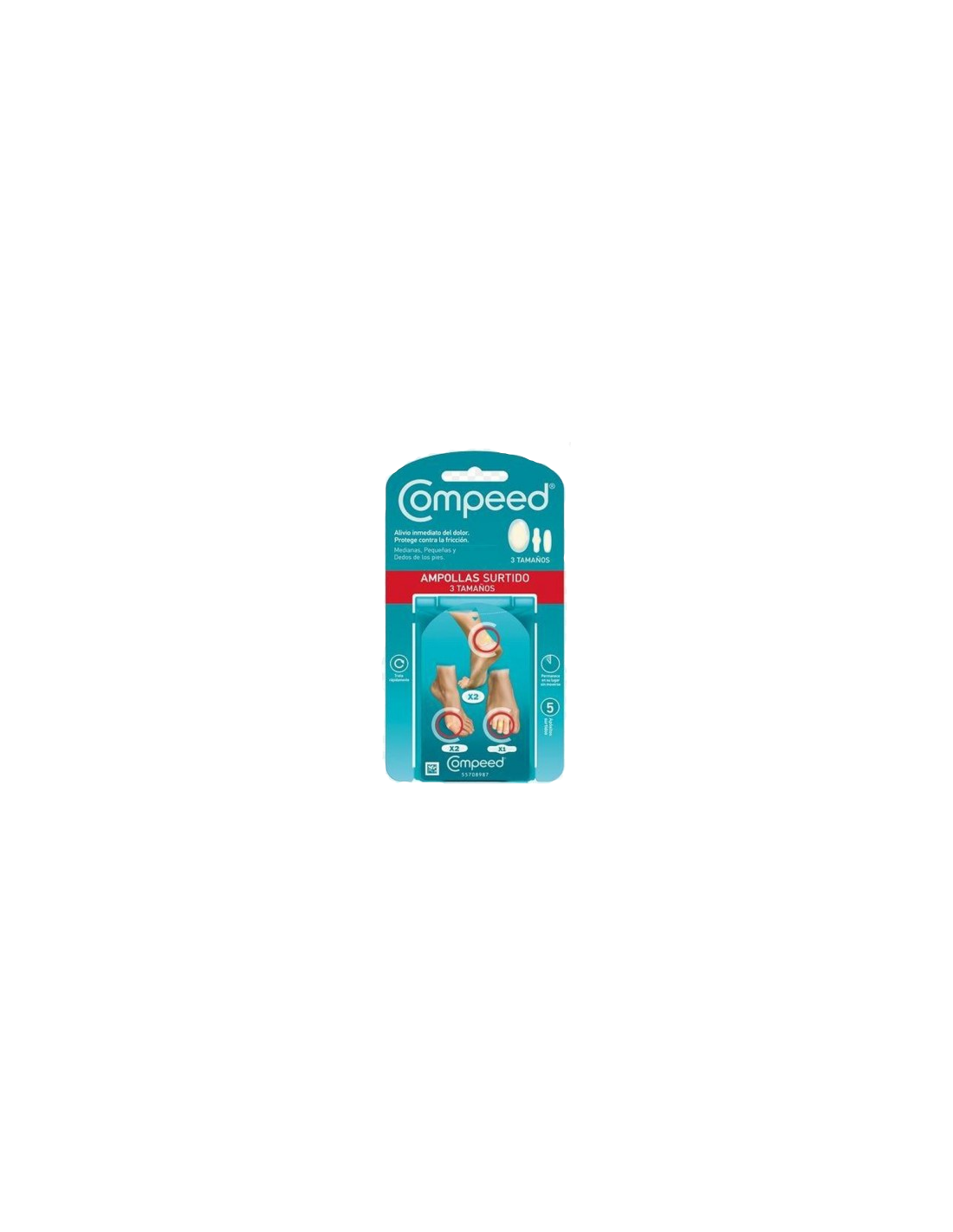 - Protección y cicatrización: Compeed Ampollas actúa como una barrera protectora sobre la ampolla, evitando la fricción y el roce con el calzado, lo que ayuda a acelerar el proceso de cicatrización.