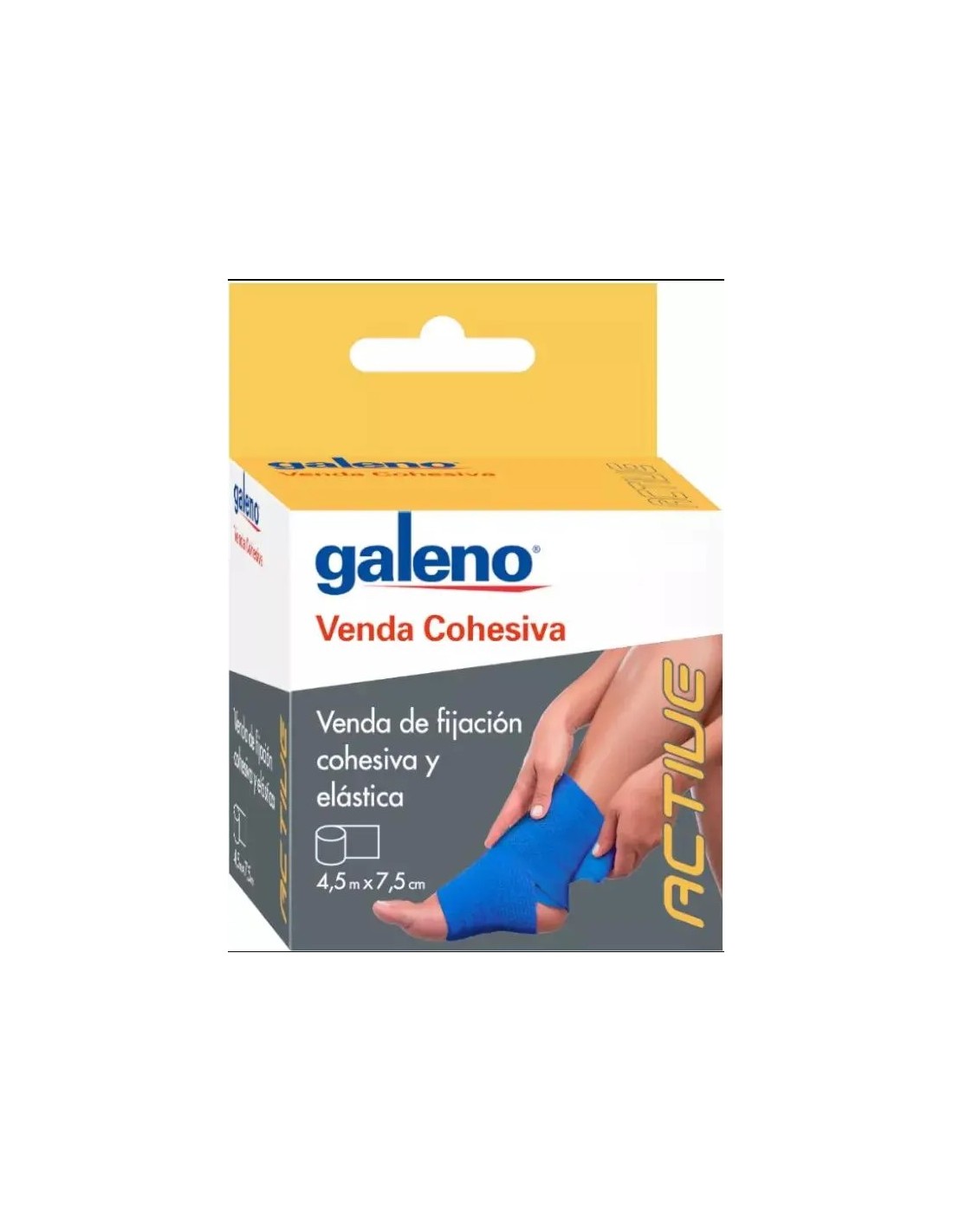 La venda cohesiva azul Galeno es un producto utilizado para la fijación y compresión de vendajes en diferentes partes del cuerpo. Esta venda tiene una longitud de 4,5 metros y un ancho de 7,5 centímetros, lo que la hace adecuada para diversos usos médicos y deportivos.