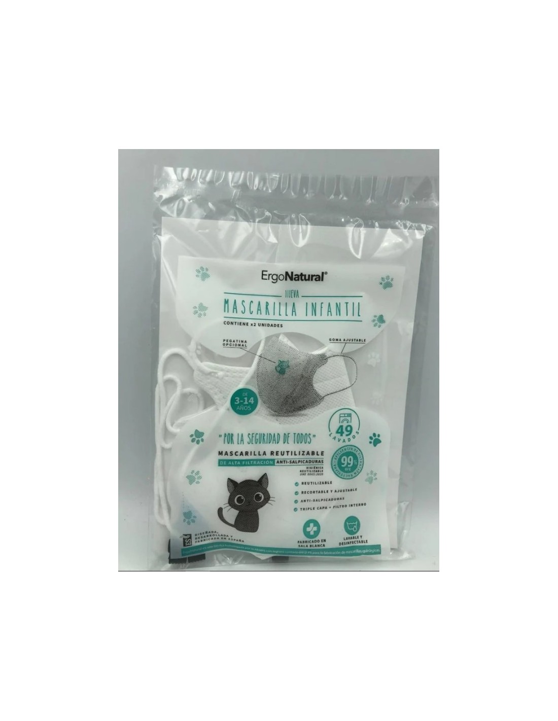 - La Mascarilla Lavable Infantil Blanca 2 Unidades Ergonatural está fabricada en España.