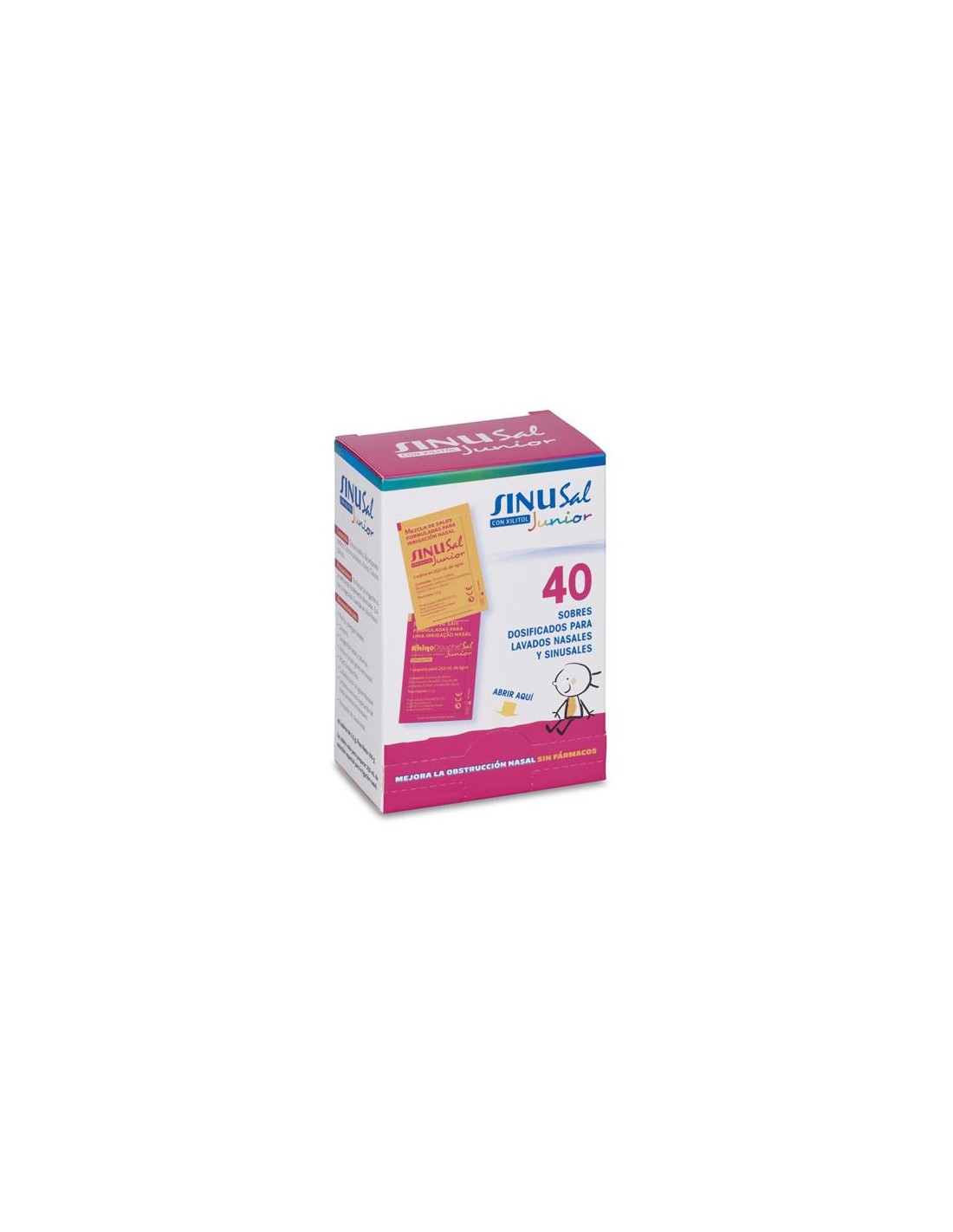 SinuSal XL Junior es una mezcla de sales que se usa para irrigar la nariz. Contiene una concentración de sales similar a la de la mucosa nasal y está tamponada para neutralizar cambios de pH del agua.