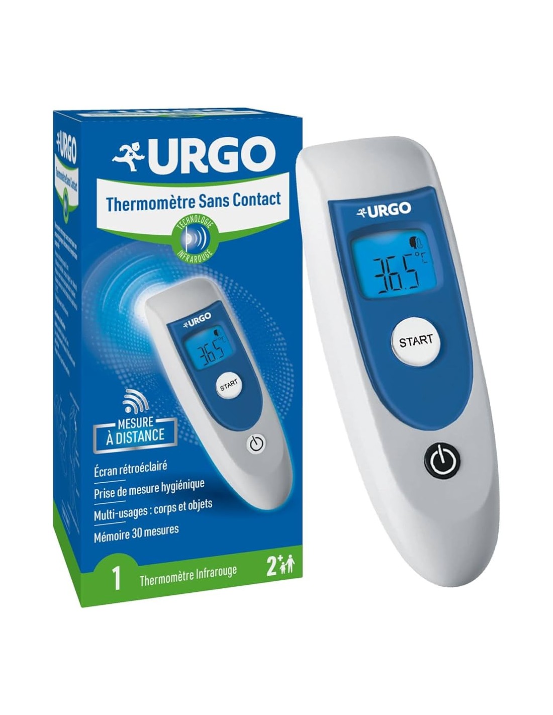 El termómetro sin contacto de infrarrojos de Urgo es un dispositivo que mide la temperatura corporal y de objetos sin necesidad de contacto físico. Puede medir hasta 5 metros de distancia y es ideal para todas las edades, desde bebés hasta adultos.