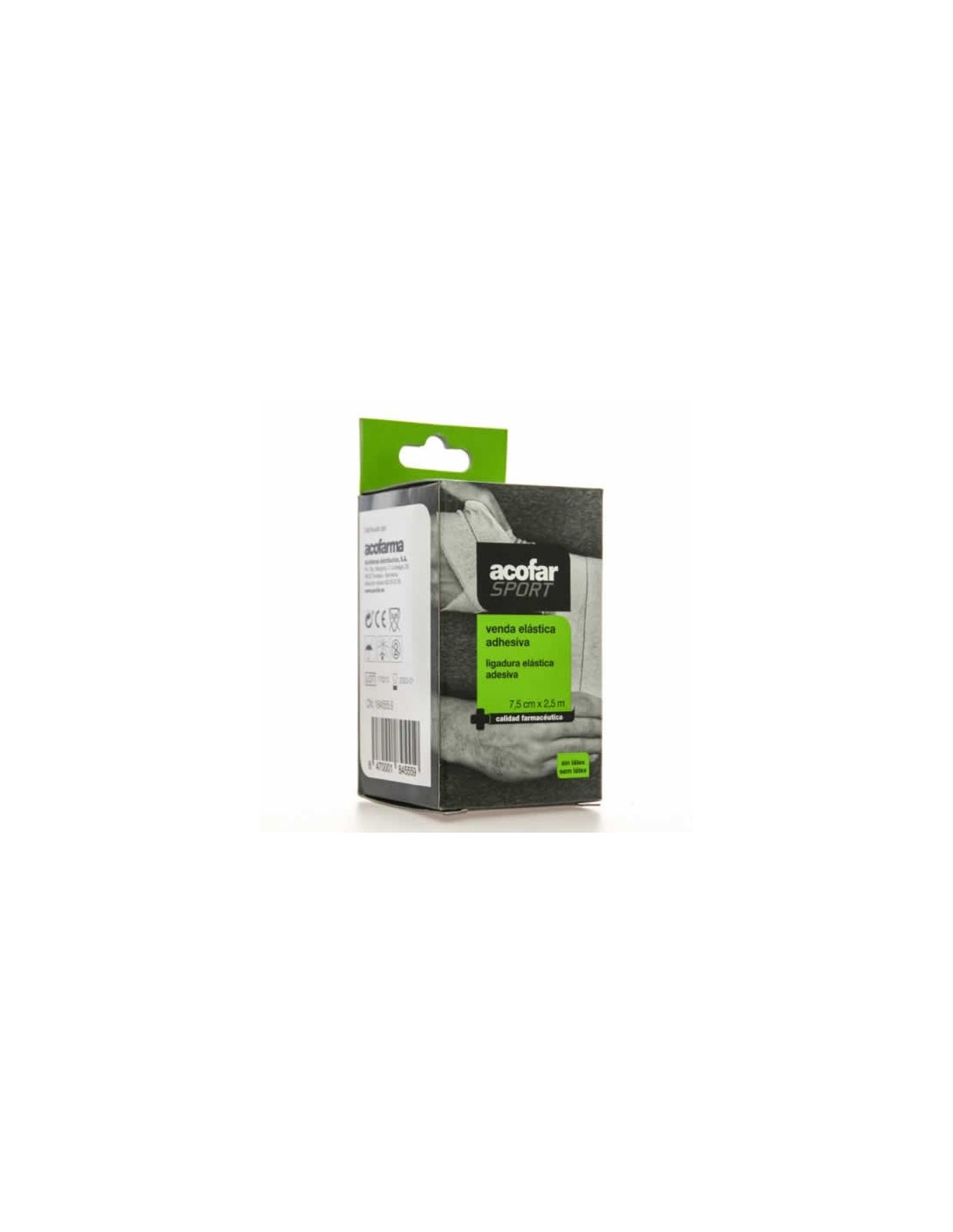 La venda elástica adhesiva Acofar es un producto diseñado para proporcionar soporte y compresión en caso de lesiones musculares, articulares o ligamentosas. Con dimensiones de 7,5 cm de ancho y 2,5 metros de longitud, esta venda es versátil y fácil de usar.