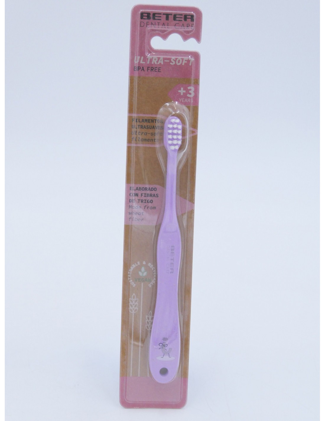 Cepillo dental suave para niños a partir de 3 años con mango de fibra de trigo.