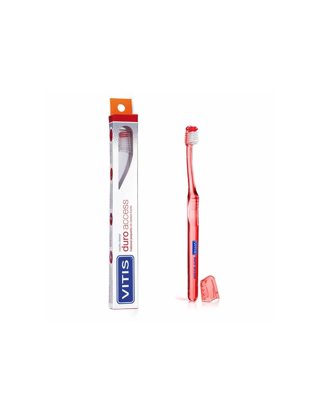 El cepillo dental Vitis Access Duro es un cepillo dental especialmente diseñado para personas con bocas pequeñas, con arcadas dentarias estrechas o con limitación de apertura bucal. Tiene un cabezal pequeño y redondeado, con cerdas de dureza dura, que permite una limpieza eficaz y segura de los dientes y las encías.