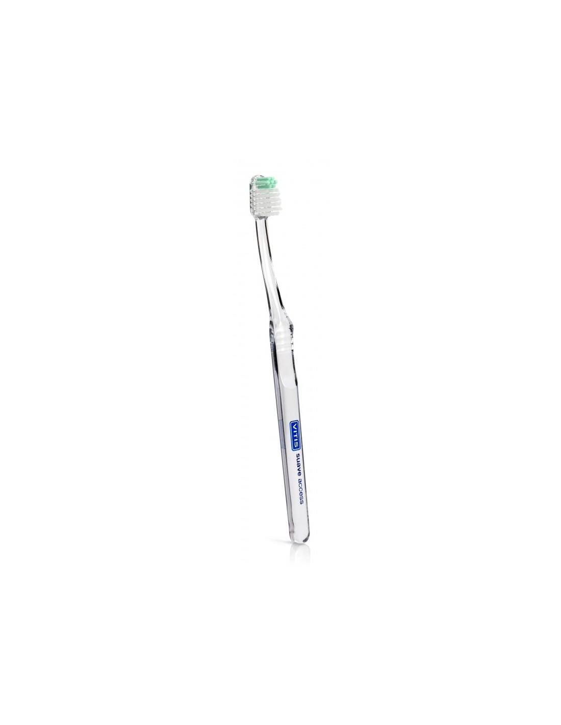 El cepillo dental Vitis Access Suave es un cepillo dental especialmente diseñado para personas con bocas pequeñas, con arcadas dentarias estrechas o con limitación de apertura bucal. Tiene un cabezal pequeño y redondeado, con cerdas de dureza suave, que permite una limpieza eficaz y segura de los dientes y las encías.