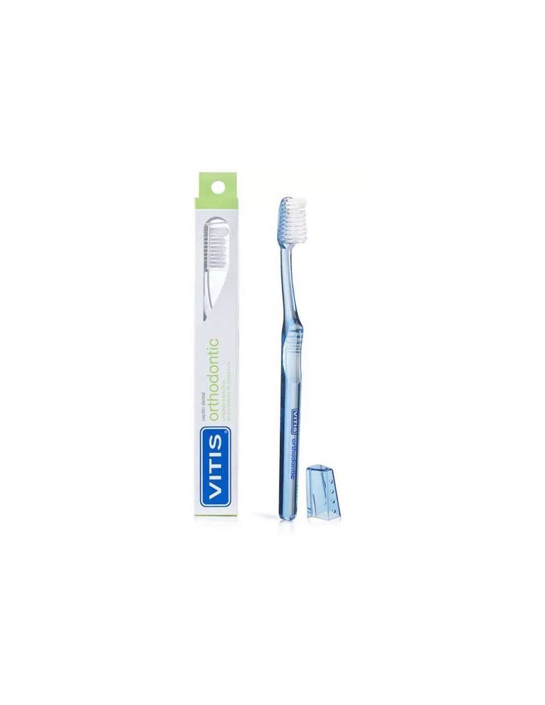 El cepillo dental Vitis Orthodontic es un cepillo dental especialmente diseñado para personas que utilizan aparatos de ortodoncia. Tiene un cabezal pequeño y angosto que puede llegar a todos los rincones de la boca, incluso alrededor de los brackets y alambres. Las cerdas son suaves y flexibles para no dañar los aparatos de ortodoncia.