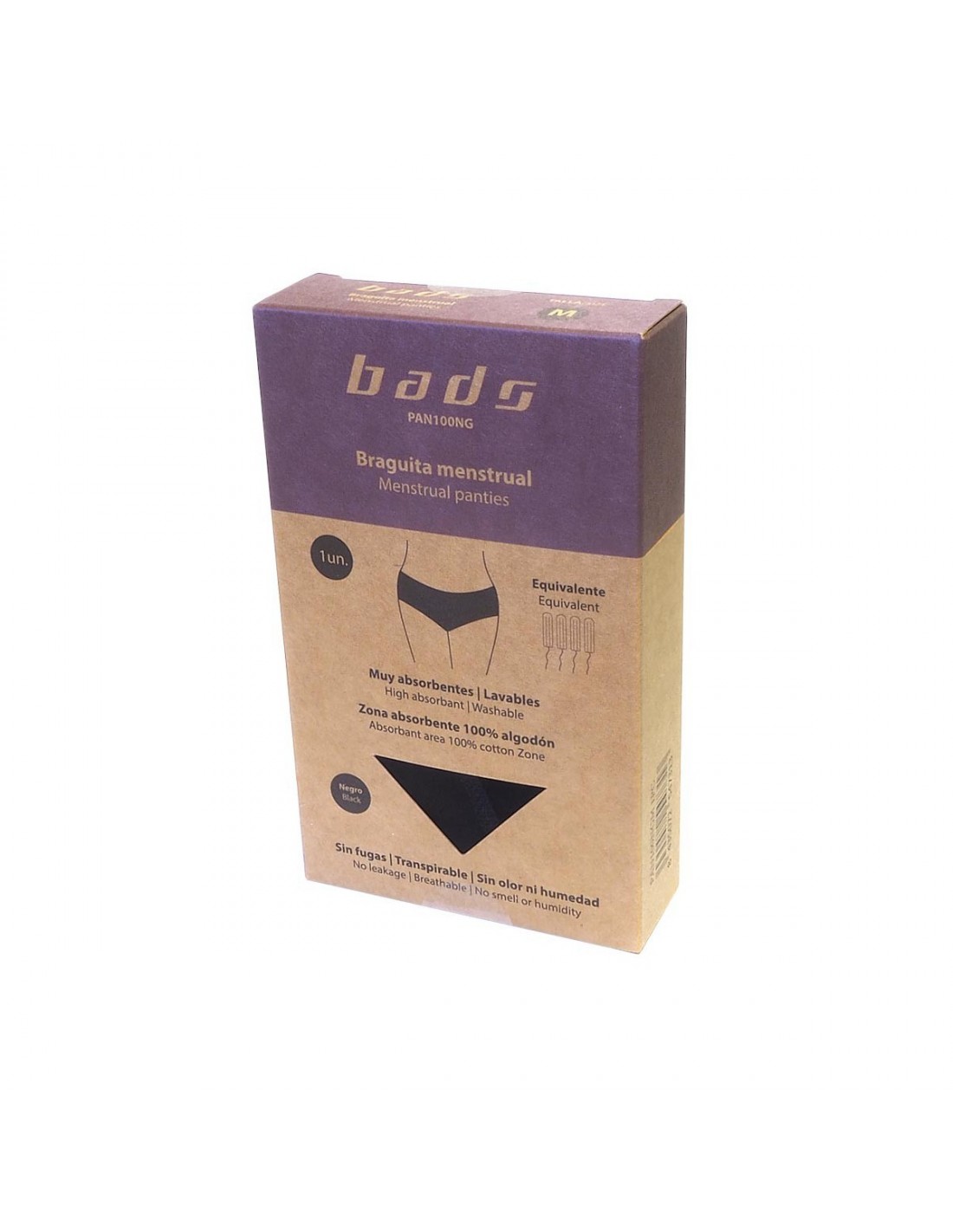 Las bragas menstruales BADS son lavables, reutilizables y se plantean como sustitución y/o complemento del tampón, la compresa desechable o la copa menstrual. Tienen el aspecto de una braga normal, pero en su interior hay una capa absorbente que puede contener las pérdidas de sangre y neutralizar los malos olores. Son cómodas, prácticas y fabricadas con materiales certificados. Con ellas, no sentirás ninguna sensación de humedad gracias a la capa de algodón que, en contacto con las mucosas, permanece perfectamente seca.