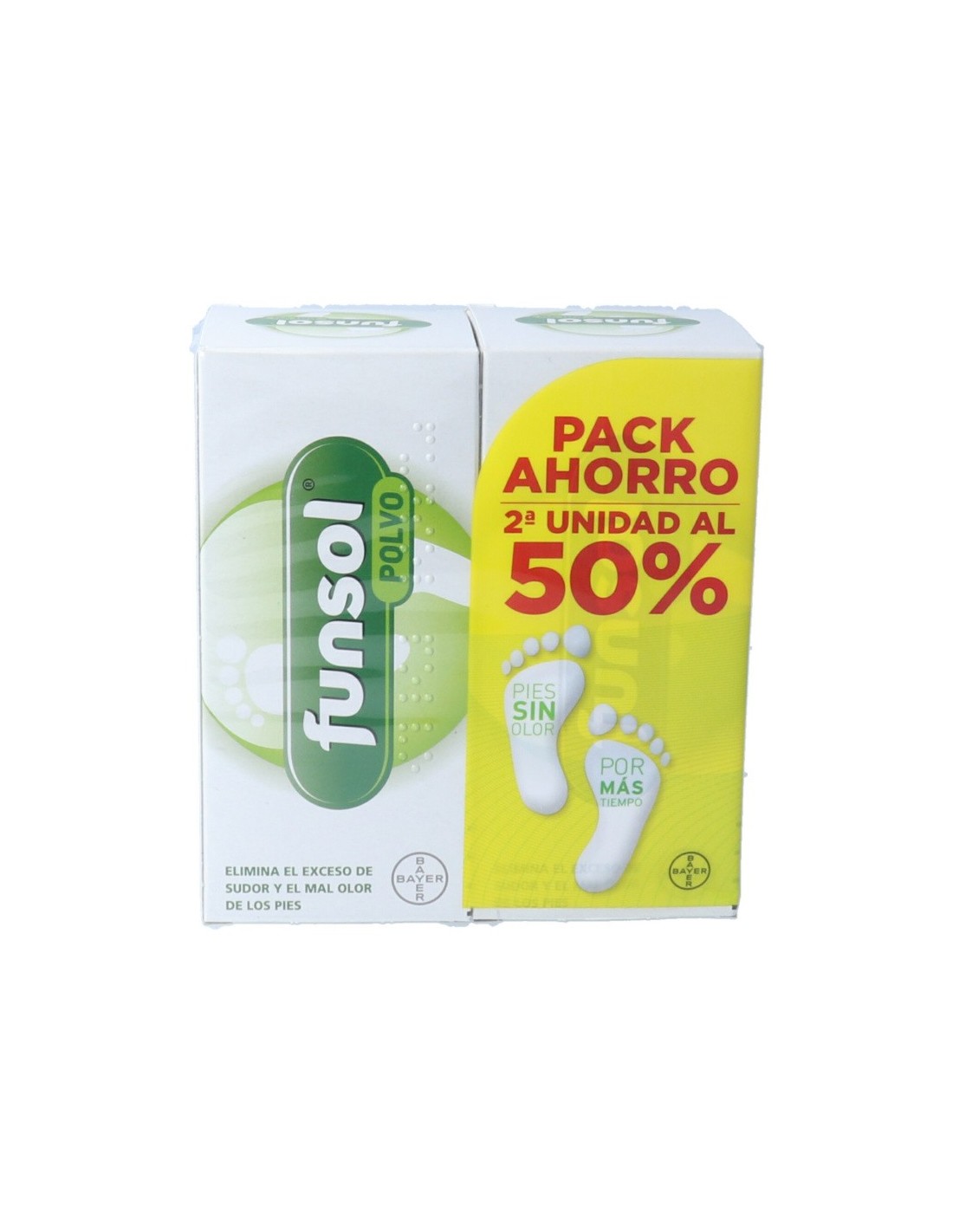 BayerFunsol® Polvo es un desodorante en polvo que elimina la sudoración excesiva y el mal olor de los pies. El desodorante para pies Funsol® Polvo elimina el mal olor sin dificultar la transpiración normal ayudando a mantener los pies frescos, secos y con olor a limpio.
