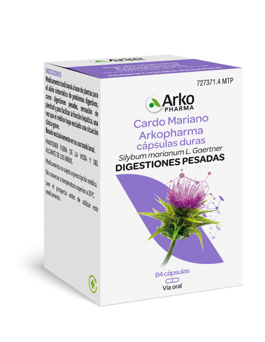 Complemento alimenticio a base de extracto seco de Cardo Mariano (Silybum marianum L. Gaertner). Es un nedicamento tradicional a base de plantas utilizado para aliviar problemas digestivos y favorecer la función hepática.