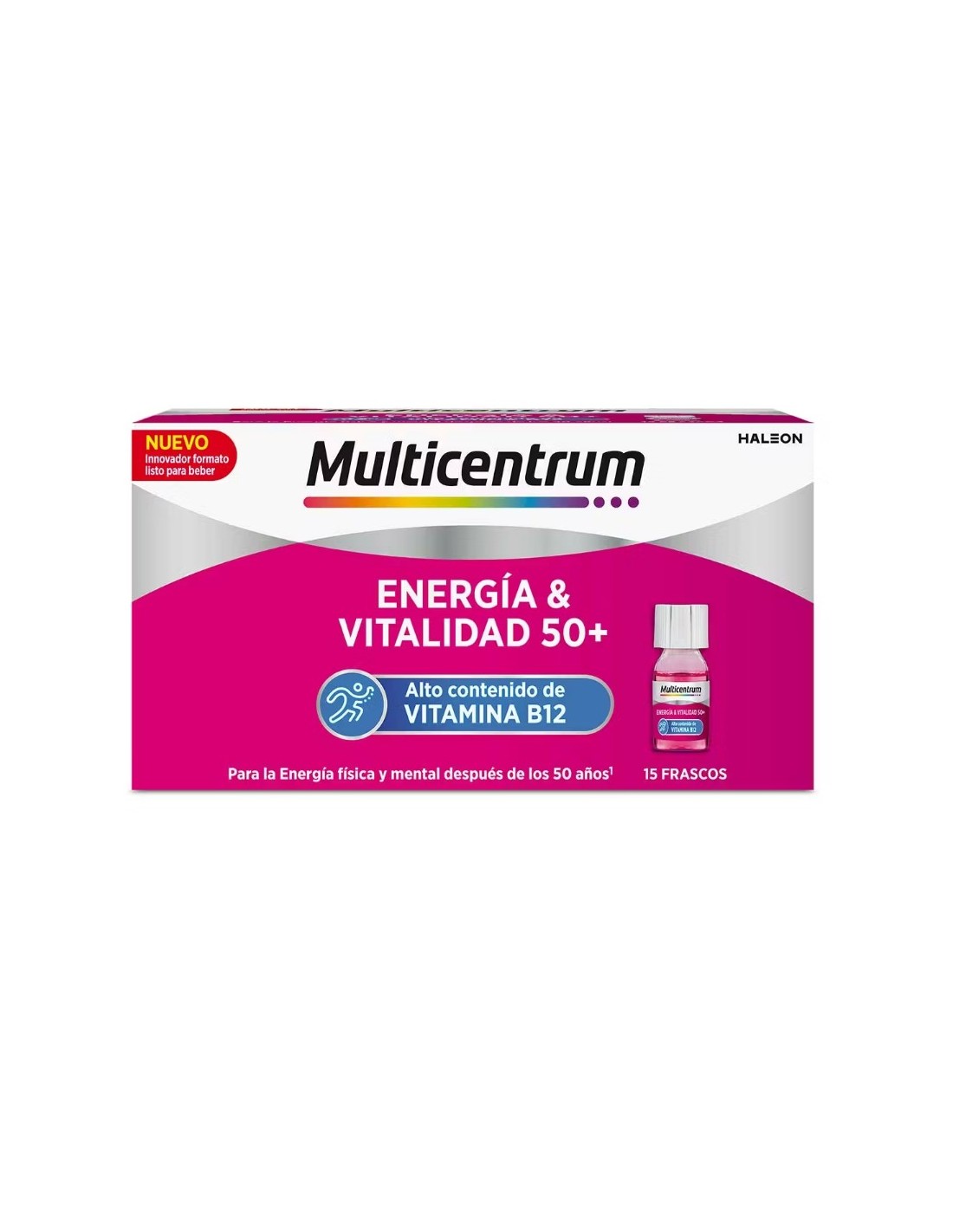 Multicentrum Energía Vit 50/15 Frascos es un complemento alimenticio a base de vitaminas, minerales y ginseng G115 que ayuda a combatir el cansancio y la fatiga, a mejorar el rendimiento físico y mental y a reforzar el sistema inmunitario.