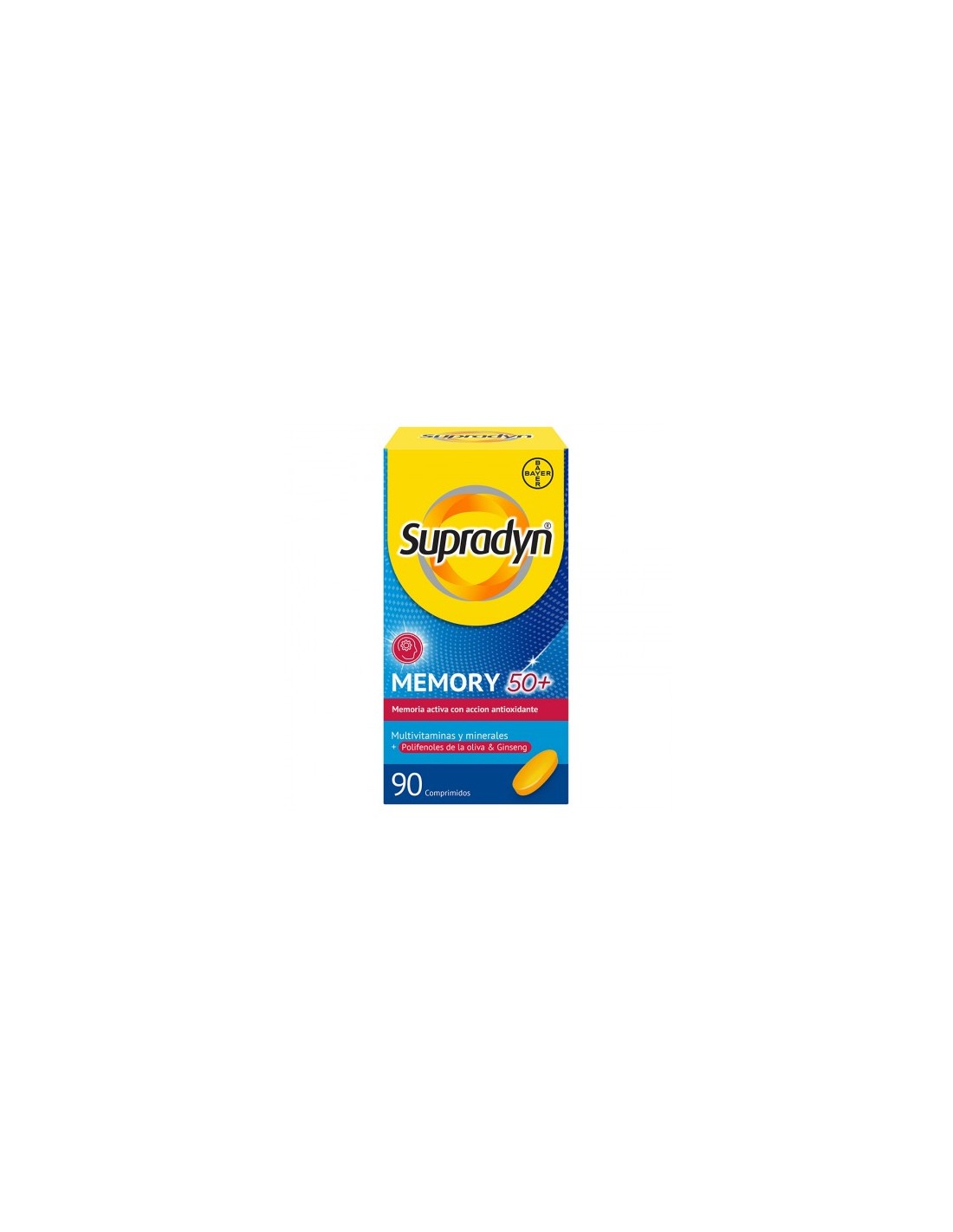 Supradyn Memory 50+ es un complemento alimenticio que contiene una combinación de vitaminas, minerales y otros nutrientes que son esenciales para el funcionamiento del cerebro.
