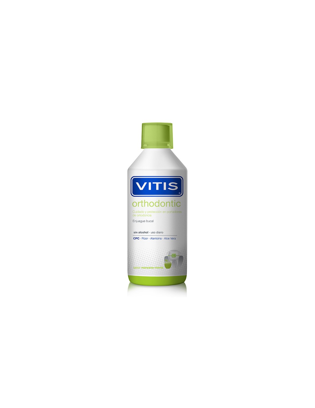VITIS COLUT ORTHO 500ML es un enjuague bucal formulado específicamente para personas con ortodoncia, ayuda a proteger los dientes y las encías de la irritación causada por los aparatos de ortodoncia.