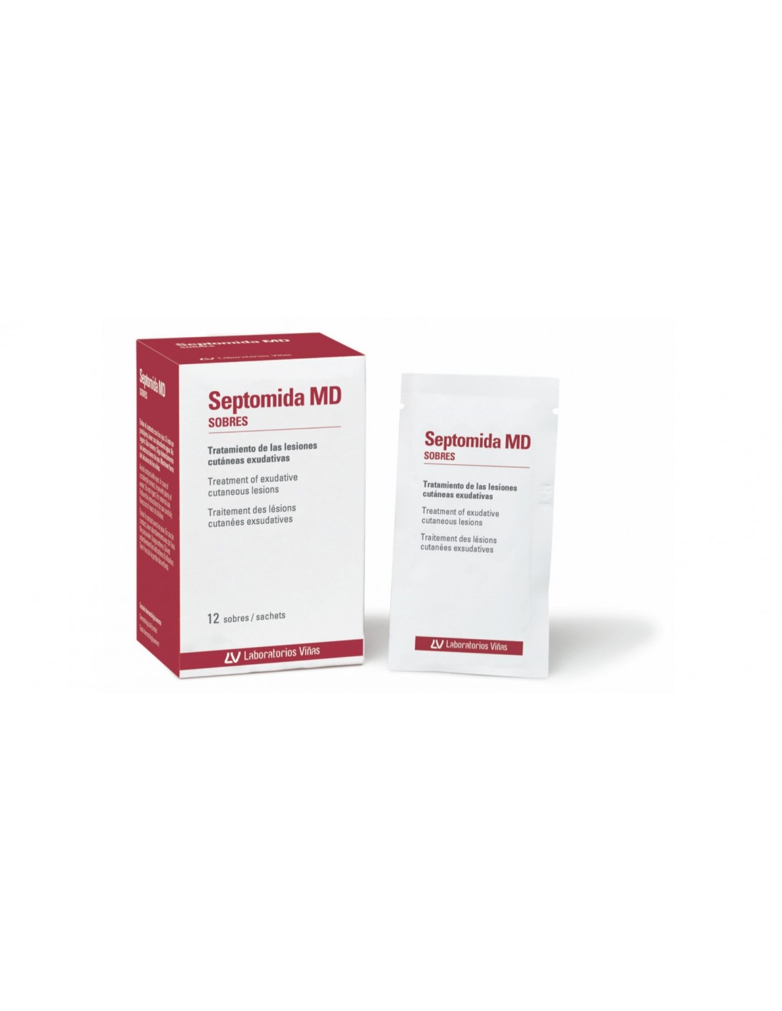 Laboratorios ViñasSeptomida MD sobres es un potente antiexudativo, astringente y un coadyuvante antiséptico para el tratamiento de las lesiones cutáneas exudativas extensas, favoreciendo su cicatrización y curación.