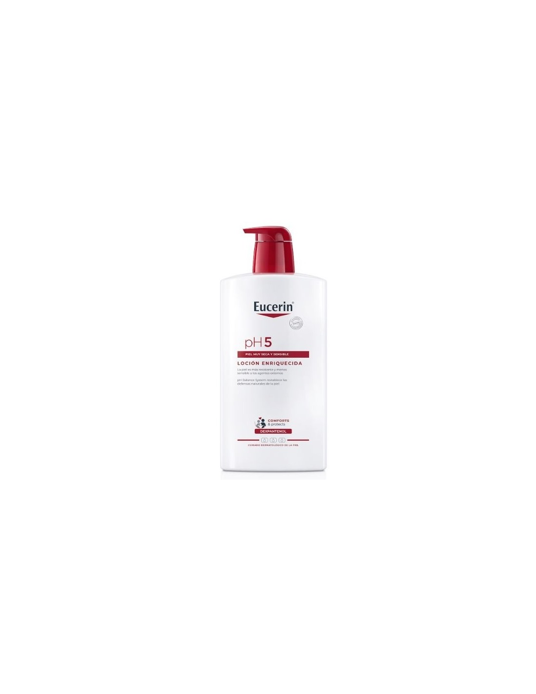 Eucerin pH5 Loción Enriquecida F rehidrata la piel intensamente, lo que mejora su resiliencia y reduce su sensibilidad a los activadores ambientales.