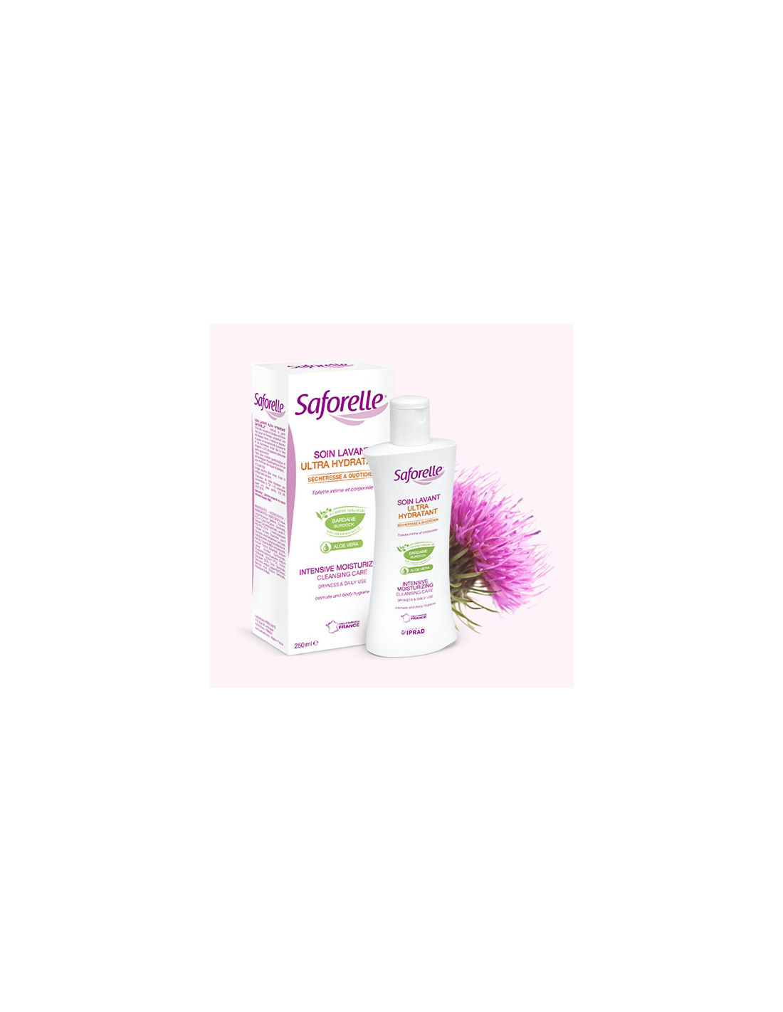 SaforelleEl gel Cuidado Íntimo Ultrahidratante limpia suavemente, hidrata aportando bienestar y confort. Está formulado especialmente sin jabón para mujeres que presentan en la zona íntima signos de sequedad, que puede estar causada por algunos medicamentos, variaciones hormonales como las vinculadas con la menopausia, etc. Con su fórmula, que combina agentes ricos en lípidos con extractos naturales de aloe vera y bardana, el limpiador íntimo Cuidado Íntimo Ultrahidratante contribuye a mejorar la hidratación íntima —lo que le aportará mayor comodidad— y una delicada rutina de higiene diaria.