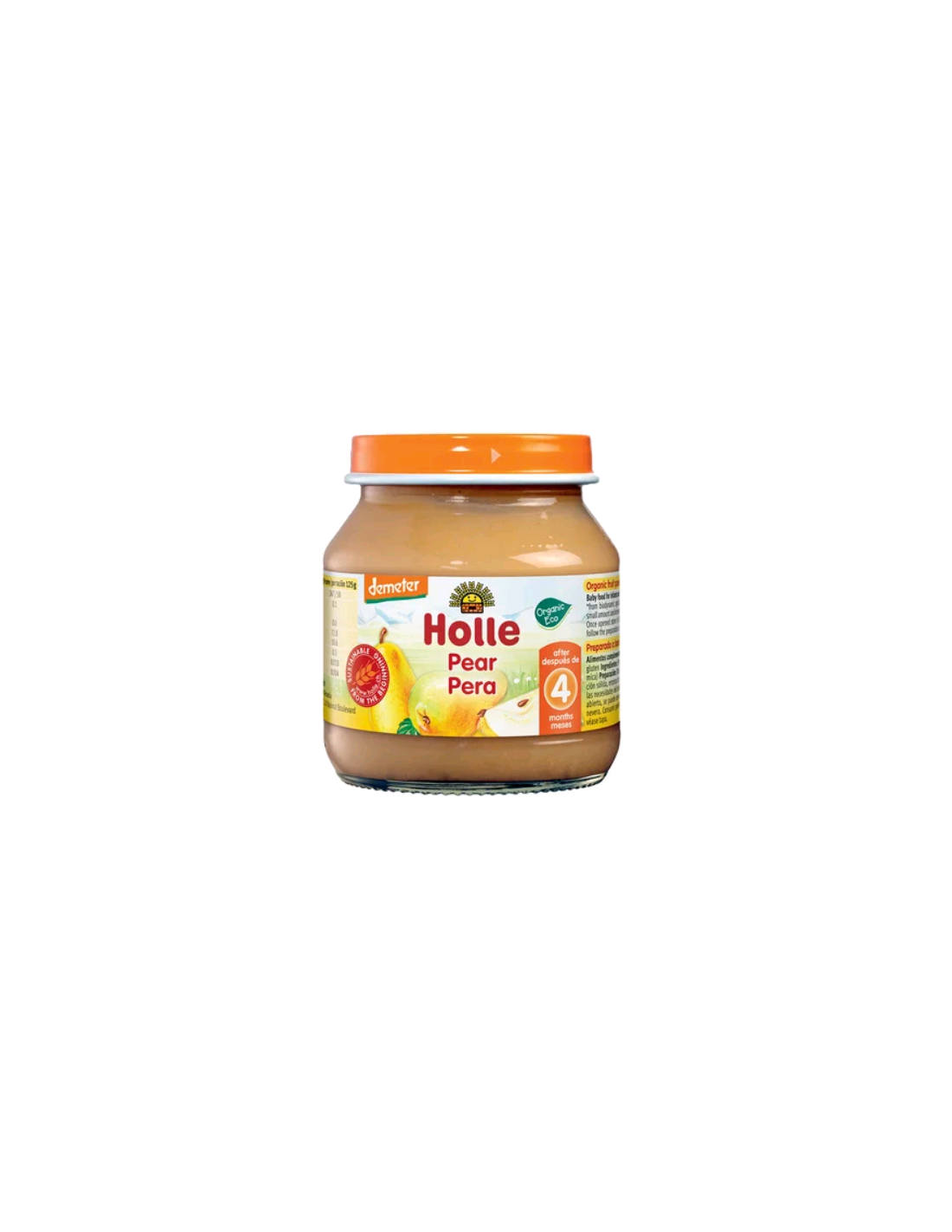 El Holle Potito Pera +4M 125 gr es un alimento complementario a base de pera 100% natural, ideal para bebés a partir de los 4 meses de edad. Está elaborado con frutas de cultivo biodinámico, sin azúcares añadidos, sin gluten ni conservantes.