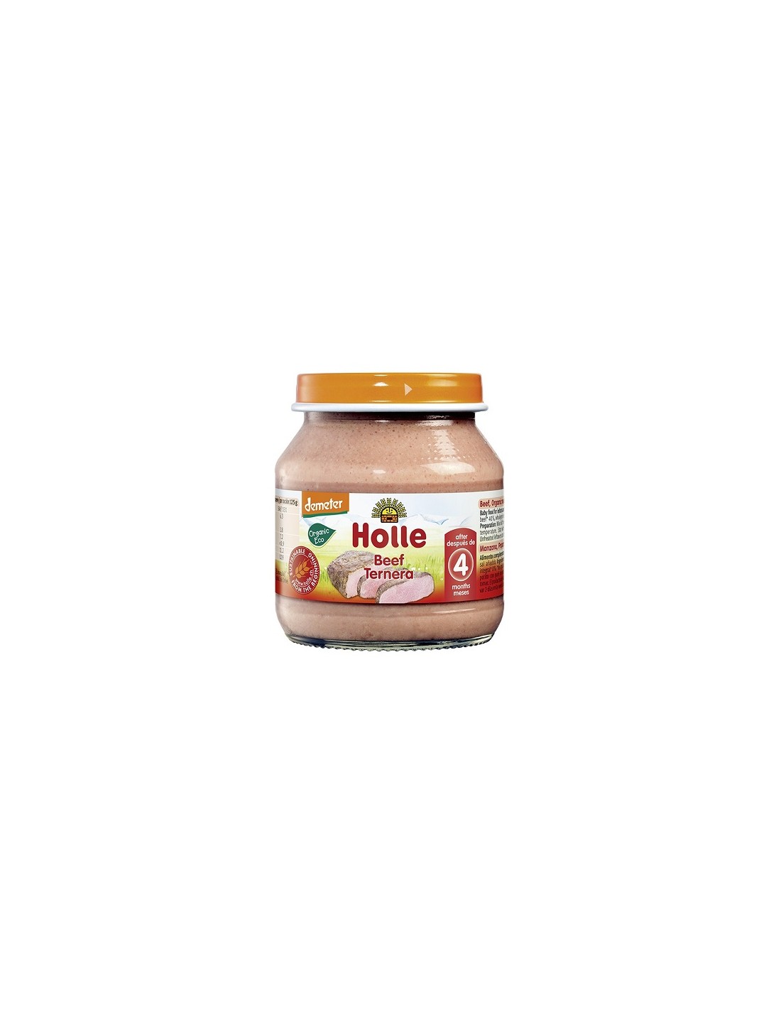Holle Potito Ternera +4 Meses 125gr Organic es un alimento papillas a base de carne de ternera ecológica, ideal para bebés a partir de 4 meses de edad. Está elaborado con ingredientes 100% naturales y de alta calidad, y no contiene azúcares añadidos, sal ni conservantes.