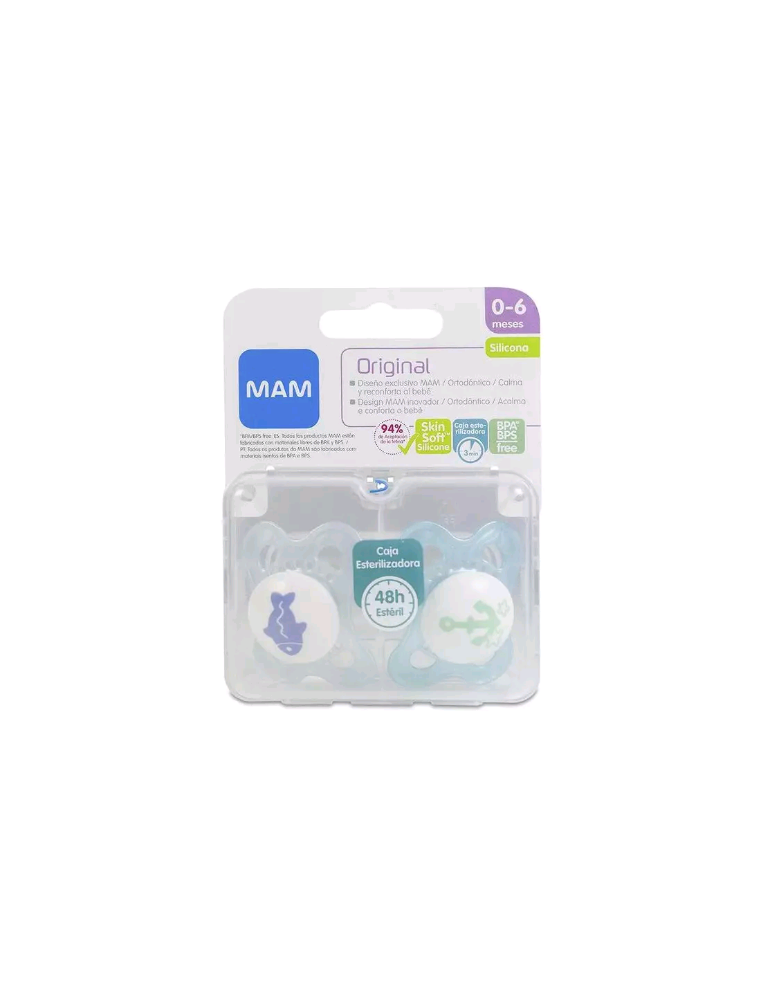 El Chupete MAM Original Silicona 0-6 Meses 2 Unidades Unisex está diseñado para ofrecer comodidad y apoyo a los bebés durante sus primeros meses de vida, desde el nacimiento hasta los 6 meses. Cuenta con las siguientes características: