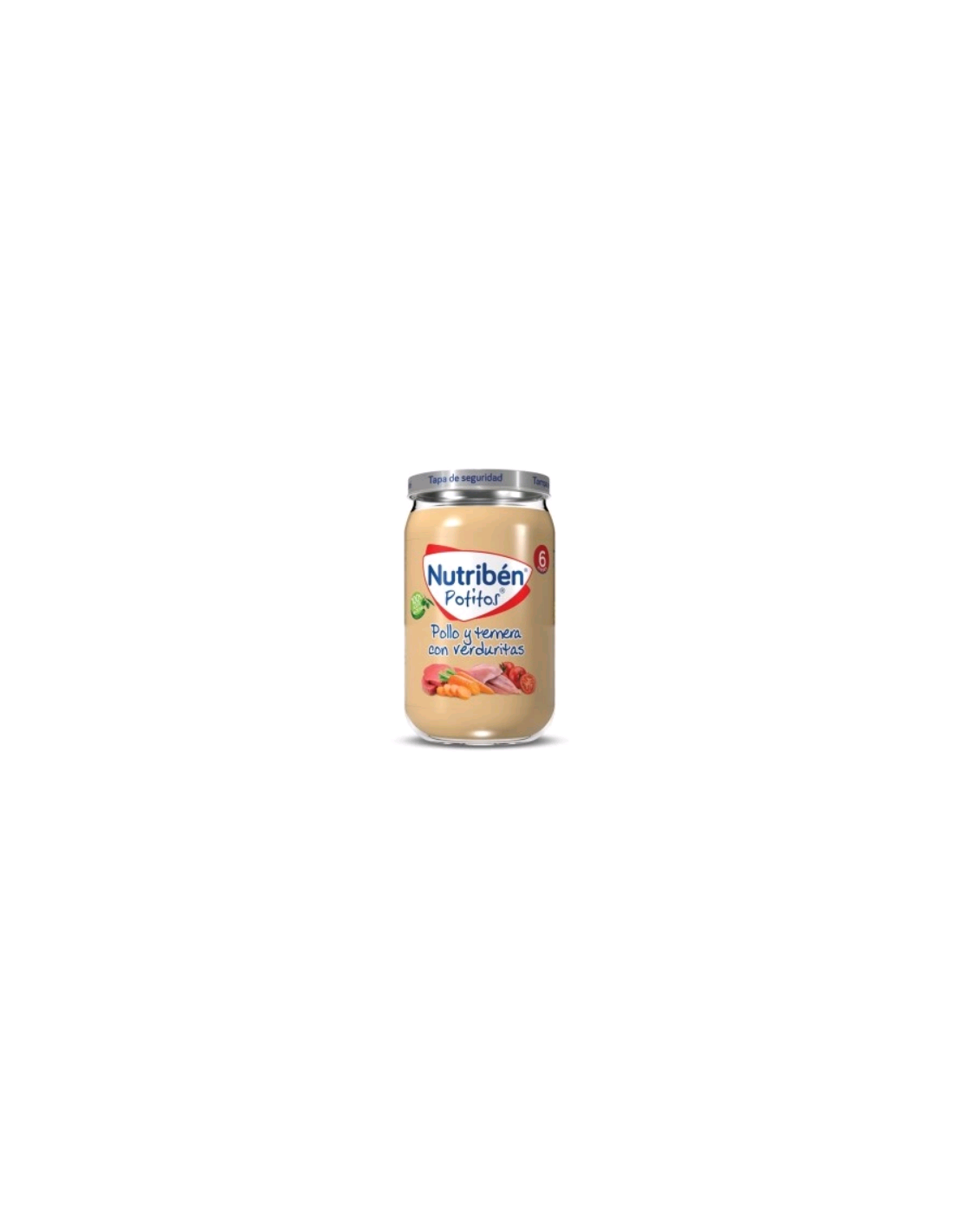 Nutribén Pollo Ternera Verduritas 235g es un tarrito de comida para bebés a partir de los 6 meses de edad. Está elaborado con pollo, ternera, tomate, patata, zanahoria y arroz, todos ellos ingredientes de alta calidad y procedentes de la agricultura ecológica. No contiene gluten, huevo ni lácteos, lo que lo hace ideal para bebés con alergias o intolerancias alimentarias.