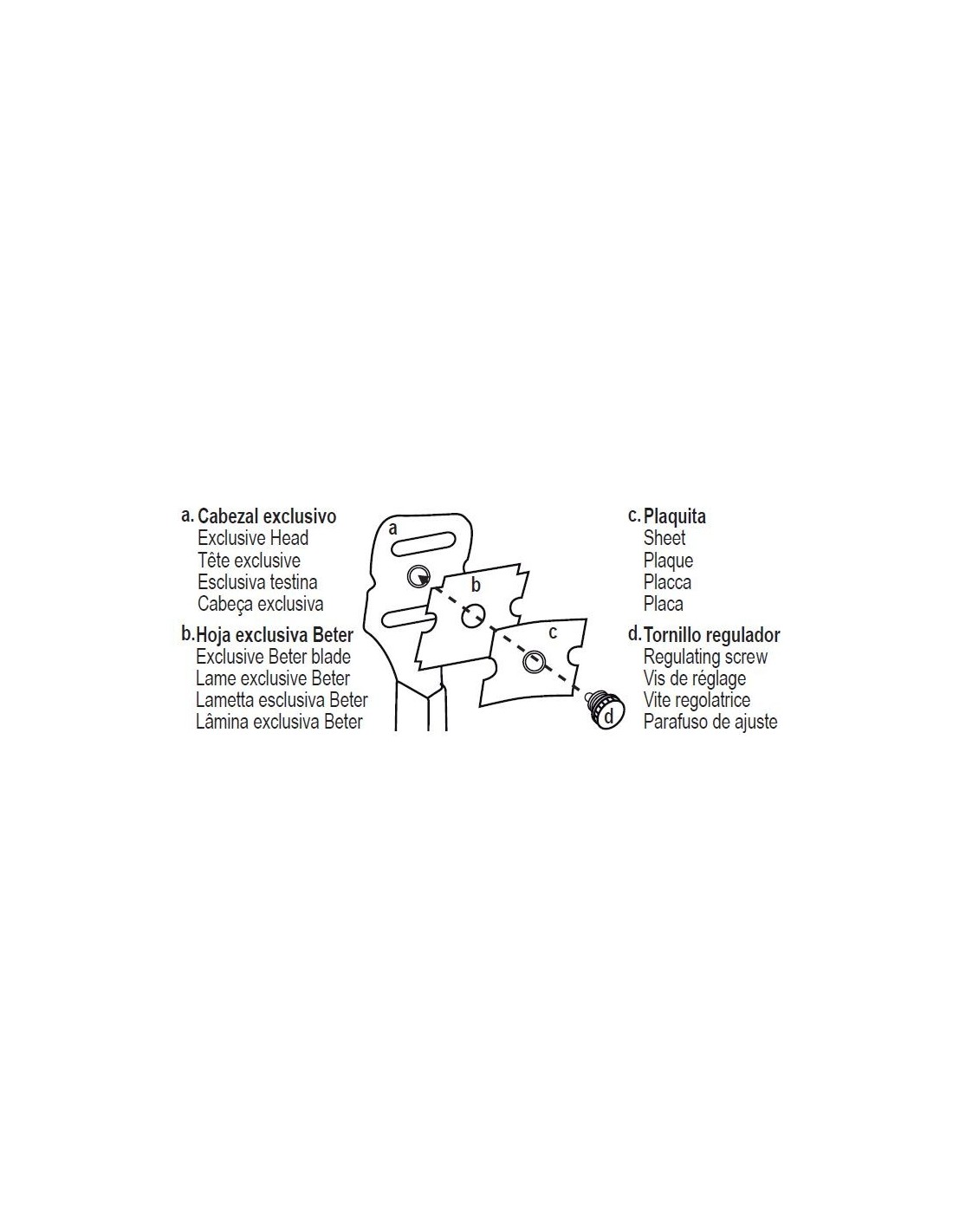 BeterIndicado para eliminar durezas y callosidades de los pies. Su cabezal exclusivo incluye un tornillo regulador del grosor del corte, proporcionando la máxima eficacia y seguridad. Utilizar solo con las hojas de recambio exclusivas Beter.