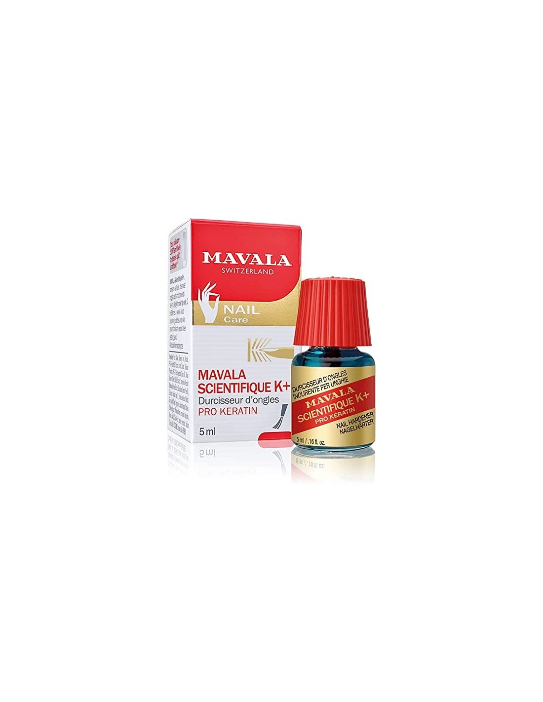 MAVALA CIENTÍFICO K+ endurece la uña gracias al ingrediente científico activo que mejora la cohesión de las fibras de queratina permitiendo que las tres capas principales de la uña se una. También contiene lágrimas de resina de cristal, una goma extraída del árbol del pistacho que ayuda al proceso natural de queratinización de las uñas, reforzándolas. Esta solución acuosa penetrante, que no es ni base ni esmalte, endurece las uñas blandas y evita que se rompan o se separen.