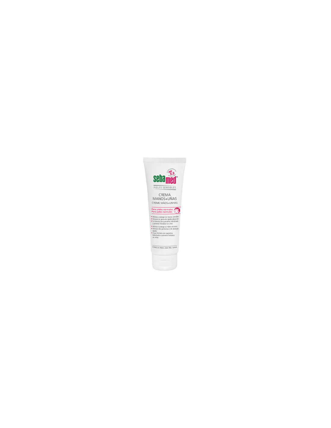 Hidratante para manos y uñas, que refuerza y protege la función de barrera natural del manto ácido de la piel, con el pH 5.5 de la piel sana, sin aditivos colorantes. Un estudio clínico demuestra un aumento de la humedad que vuelve la piel tersa y elástica de forma perceptible. Los hidratantes eficaces hacen que las manos estén suaves y mejore su aspecto gracias a su fórmula con bisabolol y pantenol, calman y previenen la irritación de la piel. La alantoína regenera y calma las manos ásperas y agrietadas y restablece la elasticidad de las uñas, reduciendo la tendencia a la rotura. Se absorbe rápida y completamente, sin residuos grasos. Formato de 75ml.