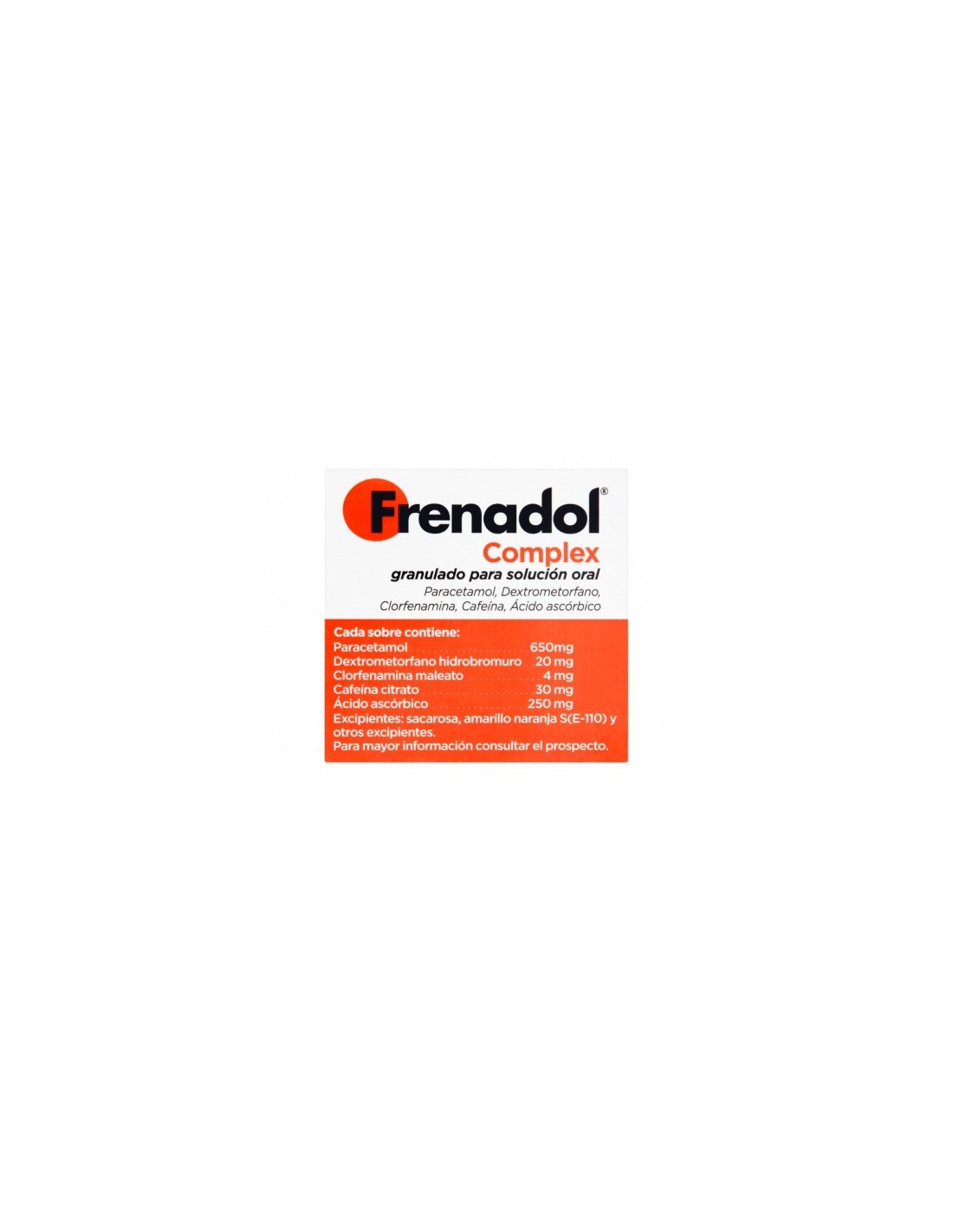 Medicamento en sobre para solución oral que combina paracetamol, dextrometorfano, clorfenamina y ácido ascórbico (vitamina C) para aliviar los síntomas del resfriado y la gripe.