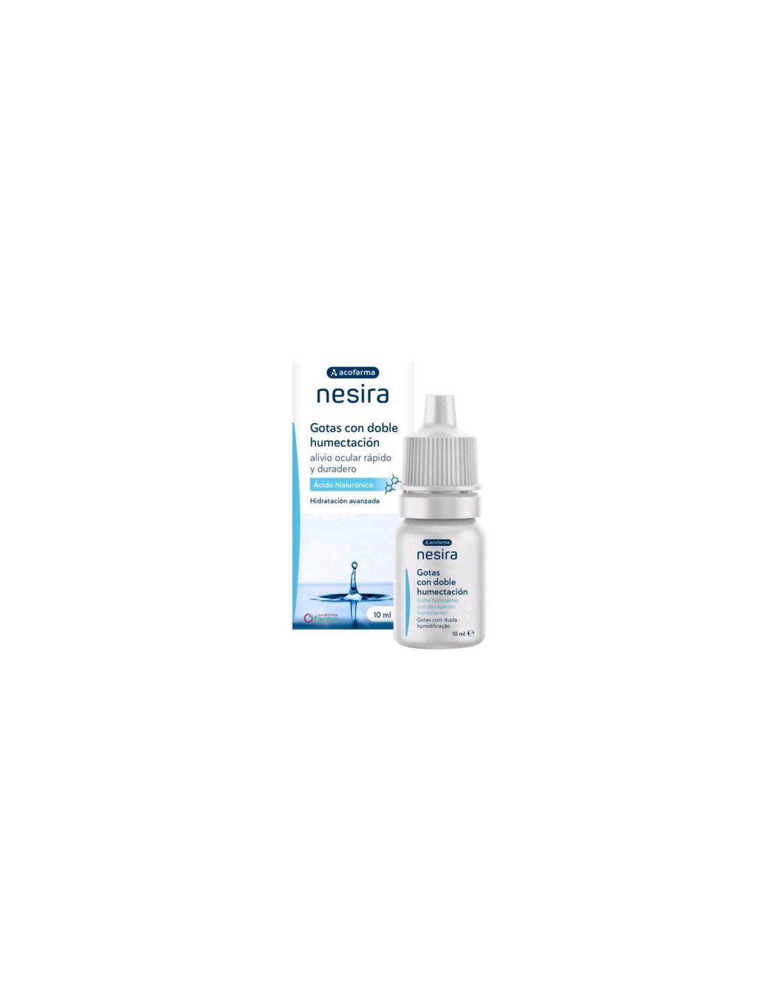 Nesira Gotas Doble Humect AH 20 Min es una solución oftálmica estéril a base de ácido hialurónico al 0.4% y carboximetilcelulosa sódica al 0.5%, indicada para el alivio temporal del ojo seco, irritado o cansado.