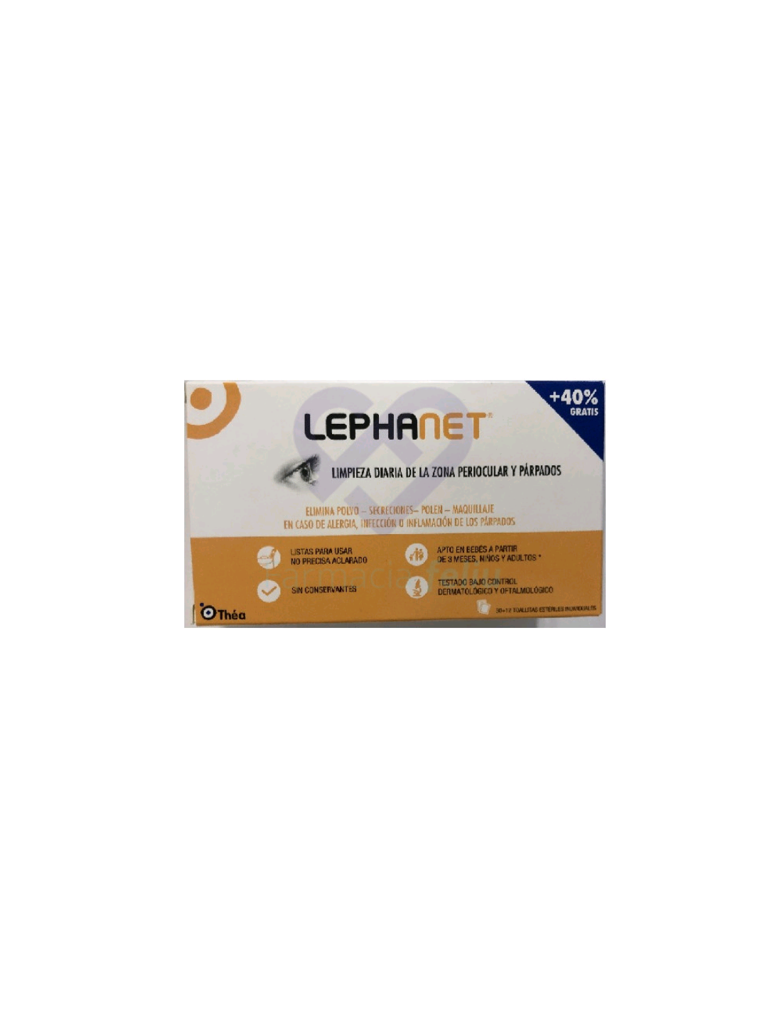 Lephanet 30 Toallitas son toallitas estériles impregnadas con una solución limpiadora suave y calmante, diseñadas para la higiene diaria de los párpados, pestañas y borde palpebral.