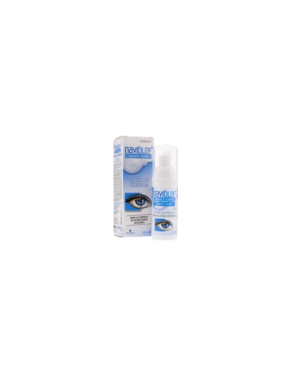 Naviblef Cuidado Diario es una espuma limpiadora para párpados y pestañas, indicada para la higiene diaria y la eliminación de secreciones oculares, costras y residuos.