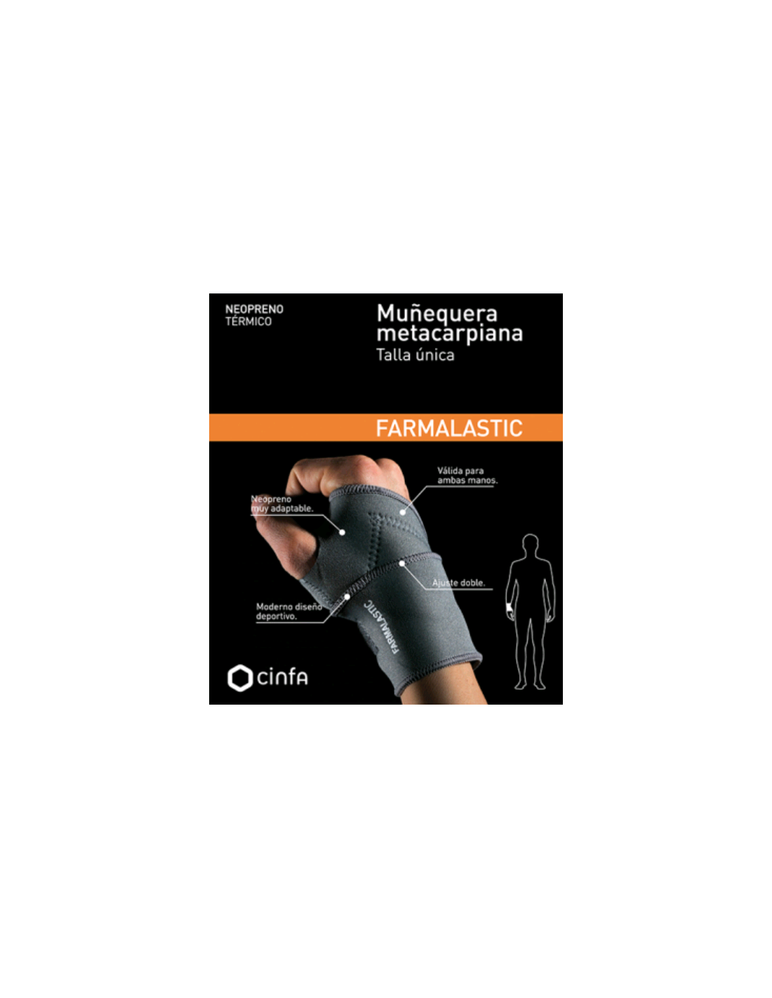 La Muñequera Farmalastic Metac Neopreno es un soporte ortopédico diseñado para brindar compresión, soporte y calor terapéutico a la zona metacarpiana de la muñeca. Está fabricada con neopreno de alta densidad, un material flexible y transpirable que retiene el calor corporal, lo que ayuda a mejorar la circulación sanguínea y reducir el dolor y la inflamación.