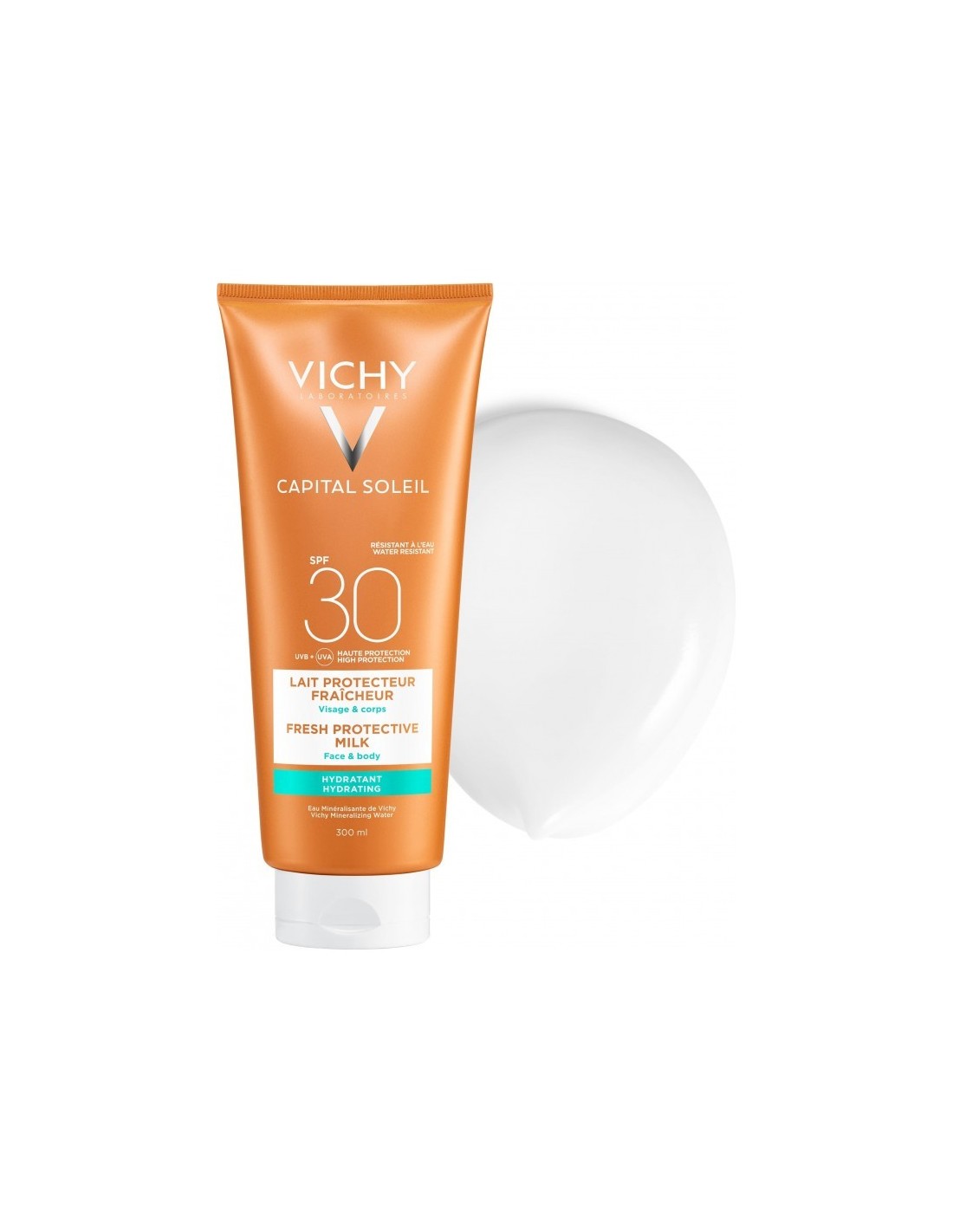 Para luchar contra los efectos nocivos de los rayos UV y proteger el preciado capital genético de la piel, los Laboratorios Vichy integran en la Leche solar un sistema de filtros de amplio espectro UVA- UVB y fotoestable con Mexoryl ®.