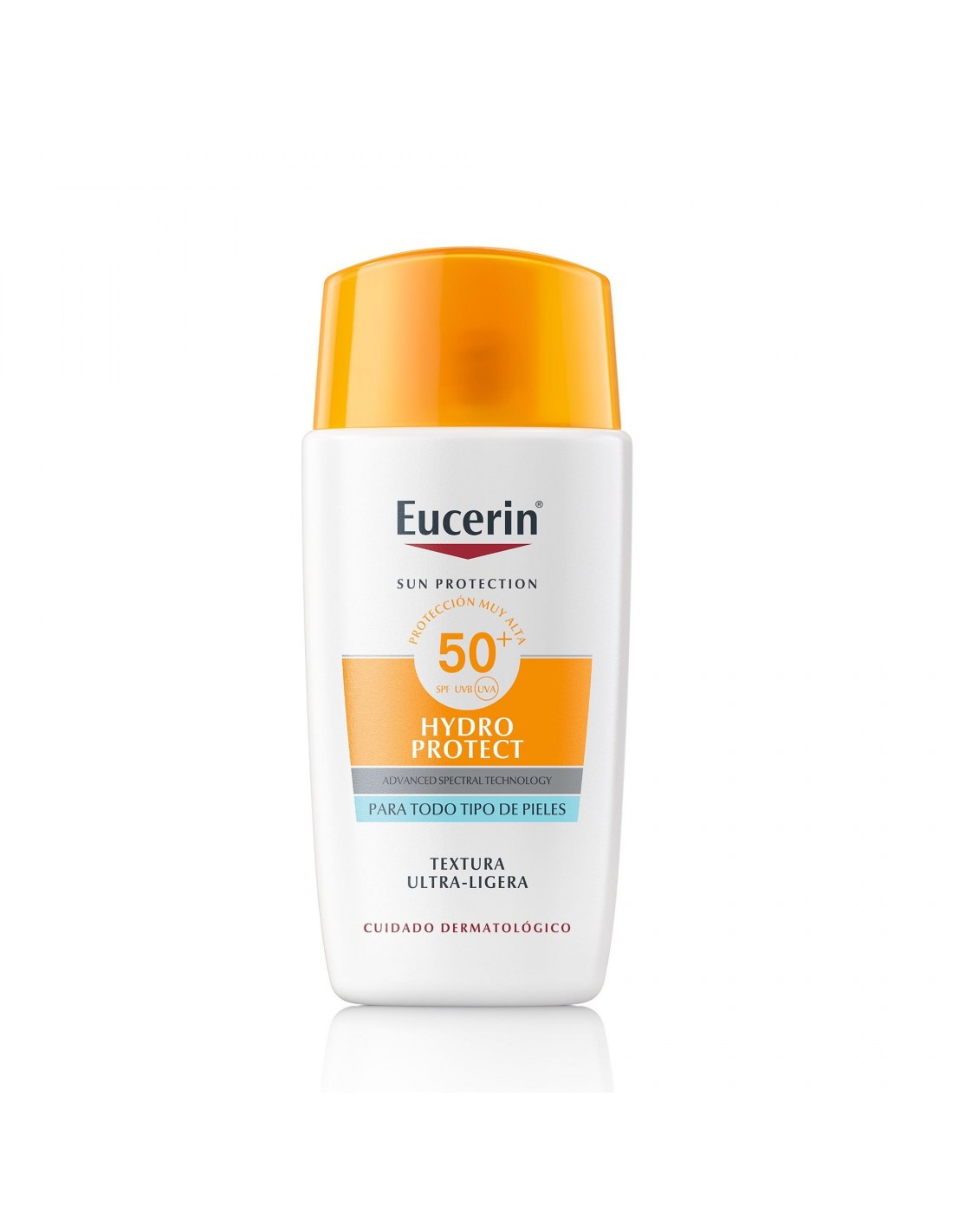 Eucerin Sun Face Hydro Protect Ultra-Light Fluid FPS 50+ es ultraligero, no graso y no pegajoso, y se absorbe de forma inmediata y con facilidad. También es no comedogénico.