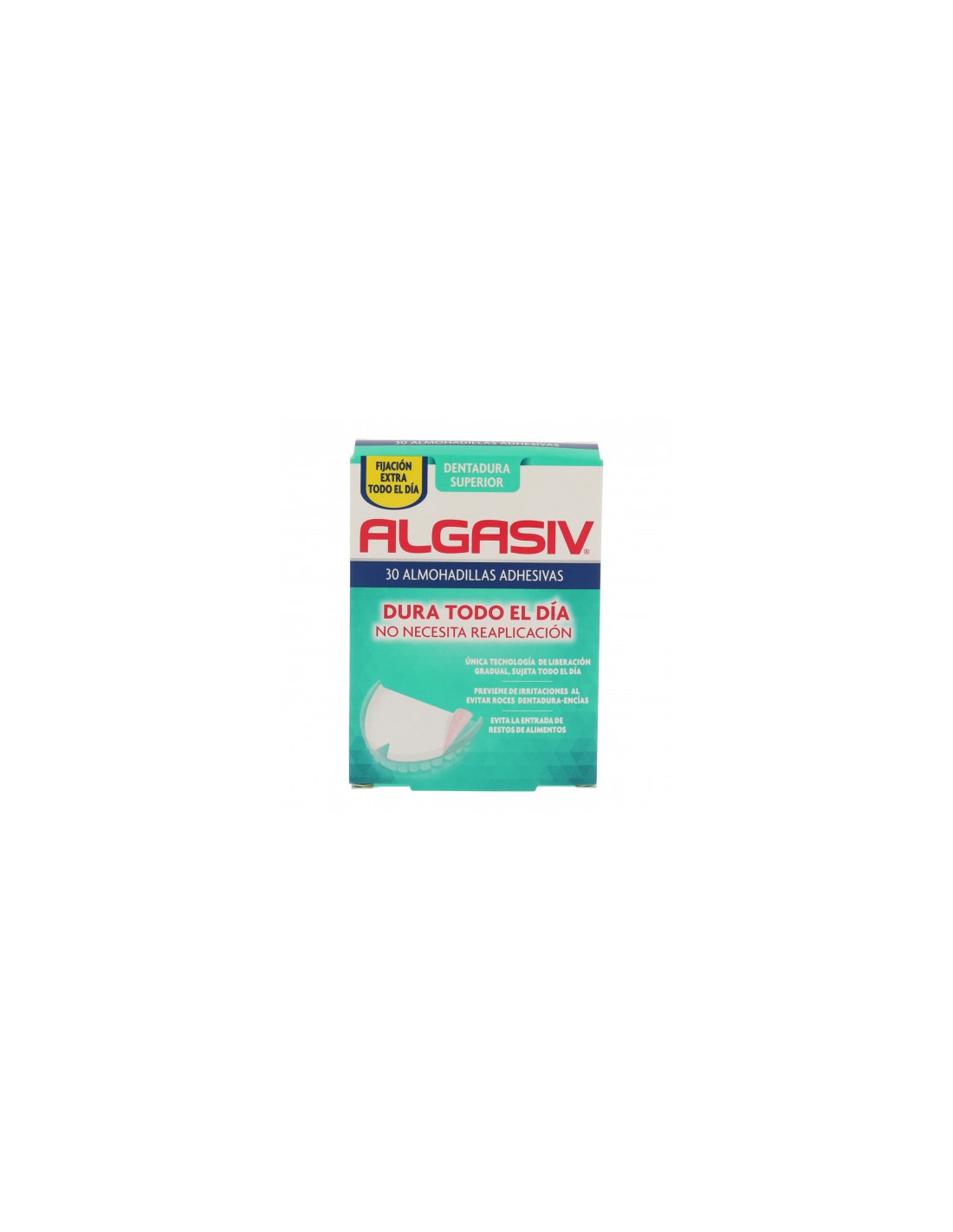Algasiv Almohadillas Dentales Super 30 Unidades son almohadillas adhesivas para dentaduras postizas que ayudan a fijar la dentadura a la encía y evitan que se mueva. Están indicadas para dentaduras postizas completas o parciales.