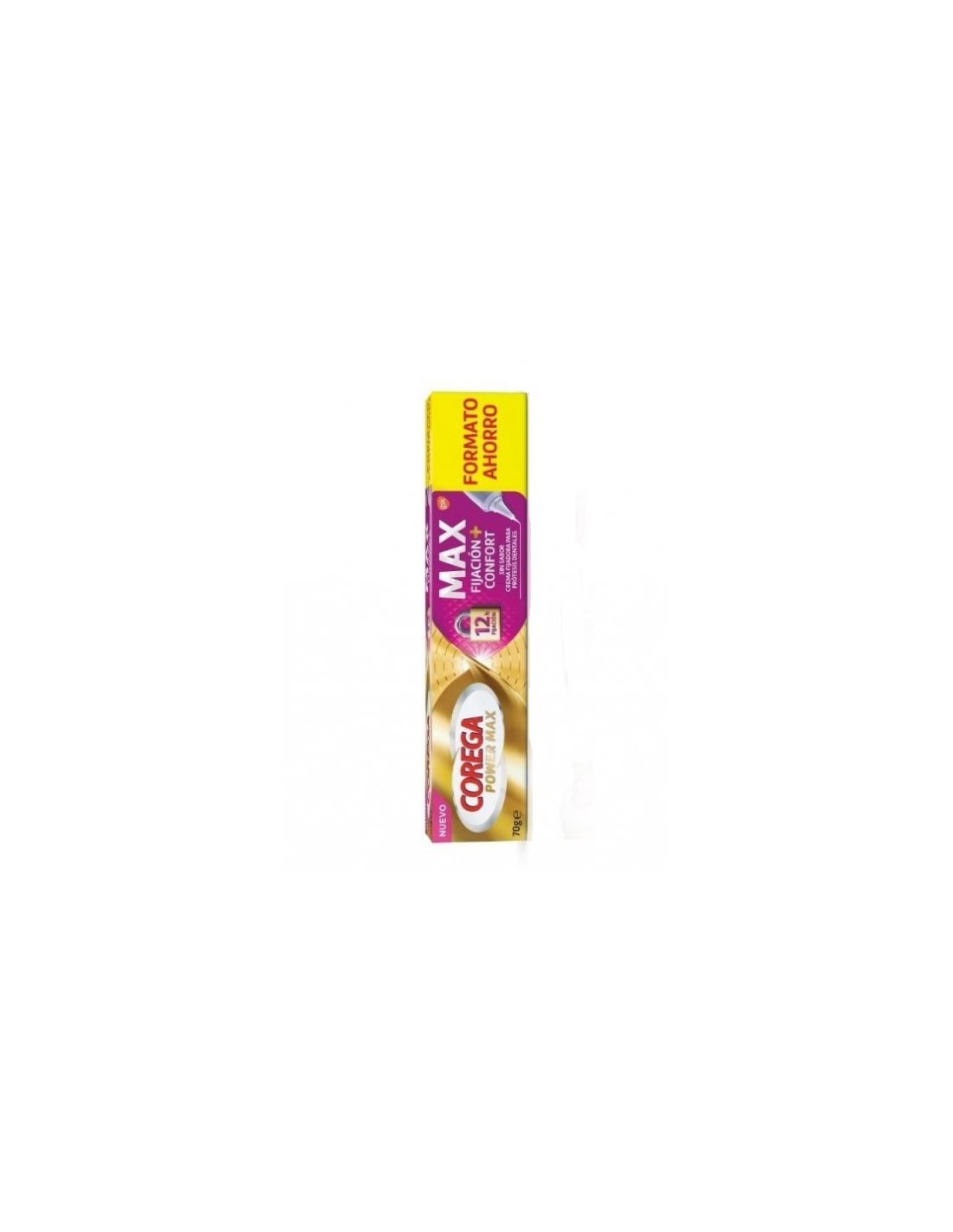 Corega Max Fijación+Confort S/Sabor 70gr, Adhesivo para prótesis dentales sin sabor para una fijación de larga duración y mayor comodidad. Este fijador de prótesis dentales es fácil de usar gracias a su boquilla de precisión, que ayuda a aplicar de forma exacta la cantidad correcta de producto.