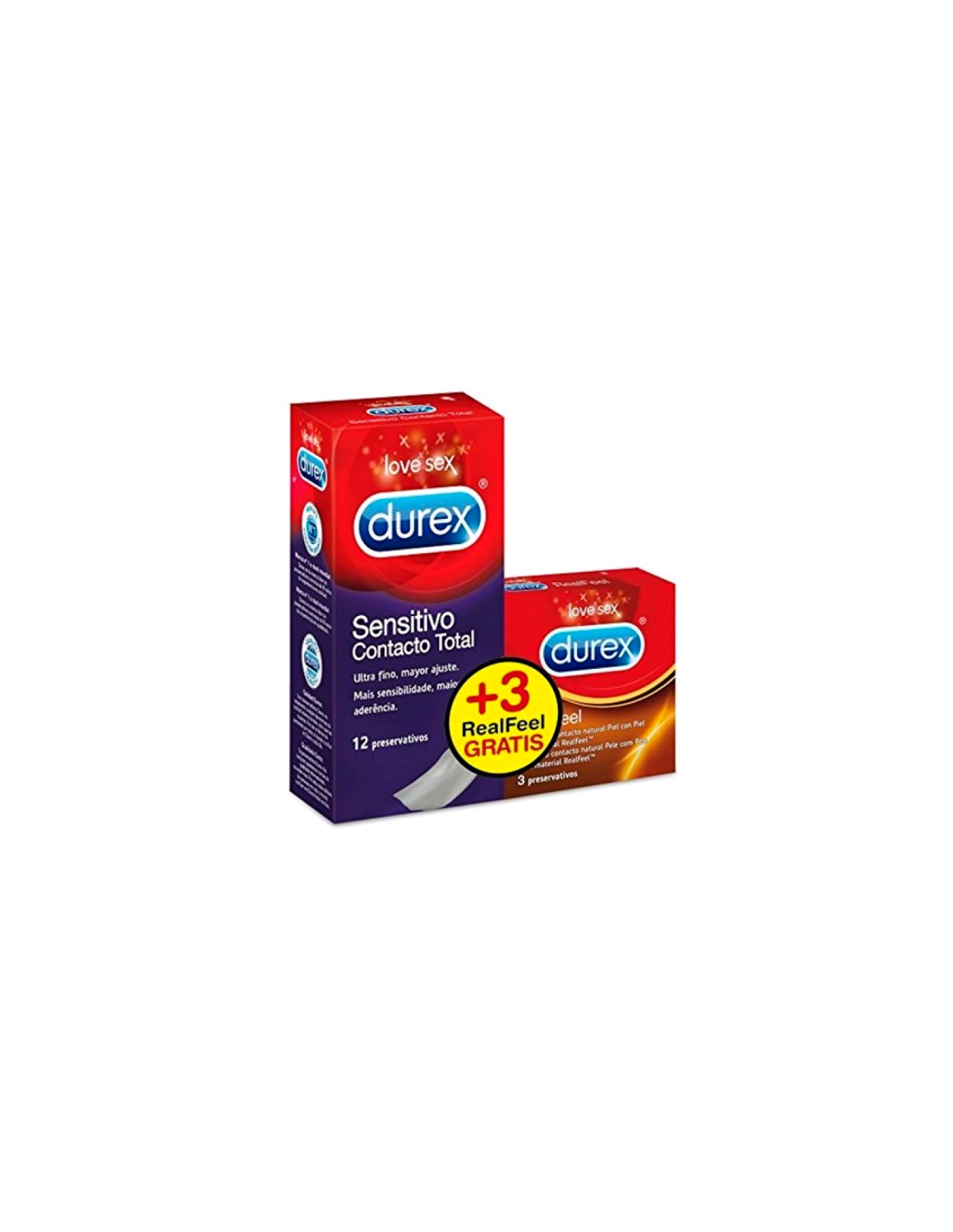 Profil Durex C/Total 12Un+Realfeel 3U es un producto que contiene preservativos Durex Sensitivo Contacto Total y Durex Real Feel.