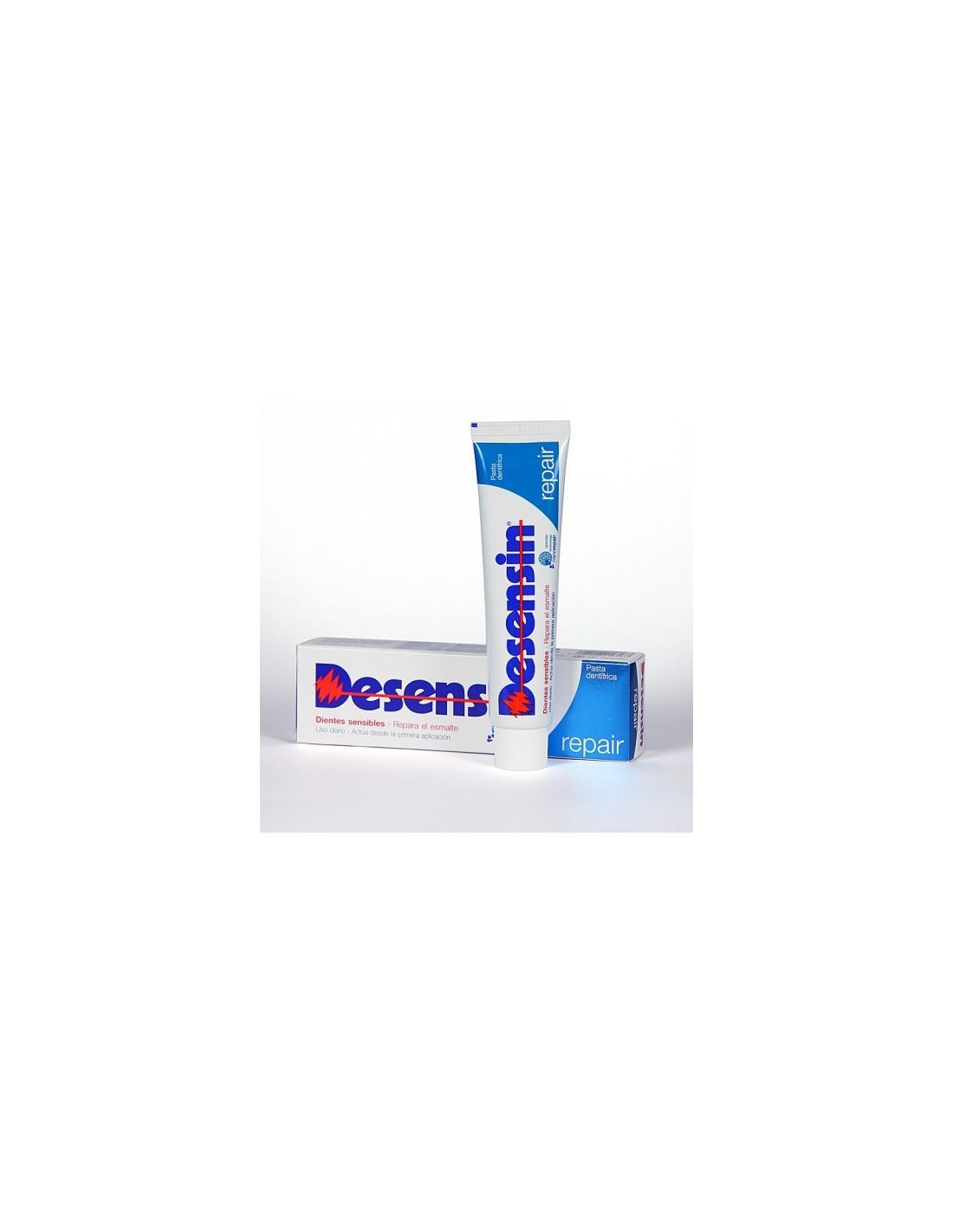 Desensin Pasta D/Sensibles Repair 125ml es una pasta de dientes de uso diario que ayuda a combatir la sensibilidad dental. Contiene nanopartículas de hidroxiapatita que reparan el esmalte dental y nitrato potásico que bloquea las señales nerviosas que causan el dolor.